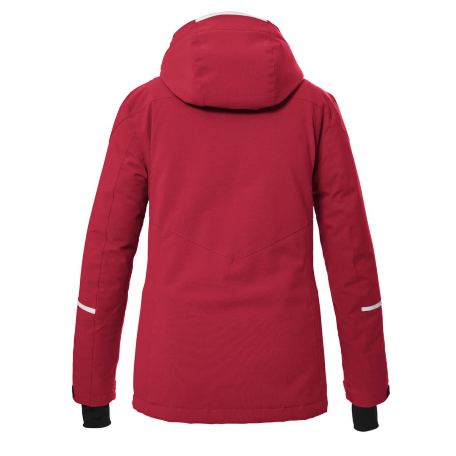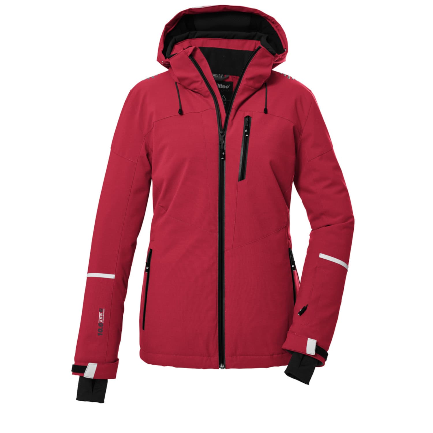 killtec Damen Skijacke KSW 81. Die killtec Funktionsjacke mit Schneefang ist bestens für alle winterlichen Outdoor- oder Alltagsaktivitäten geeignet. Die Winterjacke ist atmungsaktiv mit einer Wasserdampfdurchlässigkeit von 3.000 g/m²/24 h. Sie ist mit einer 10.000 mm Wassersäule und durch verschweißte Nähte und wasserdichte Reißverschlüsse 100% wasserdicht. Die verstellbare Kapuze kann bei Bedarf abgenommen werden. An den verstellbaren Ärmelbündchen befinden sich Lycracuffs mit Daumenschlaufen, die das Eindringen von Wind verhindern. Der Schneefang mit rutschfester Gummierung schützt vor Wind und Schnee. Der Reißverschluss ist mit einem praktischen Kinnschutz versehen. Diverse Taschen bieten Platz für Handy, Schlüssel und Co. killtec liegt es besonders am Herzen, die Kollektionen nachhaltiger und zukunftsfähiger zu machen. So setzt killtec verstärkt auf verantwortungsbewusstere Herstellungsverfahren. Diese Jacke ist daher PFC-frei. Material: 100% Polyester.