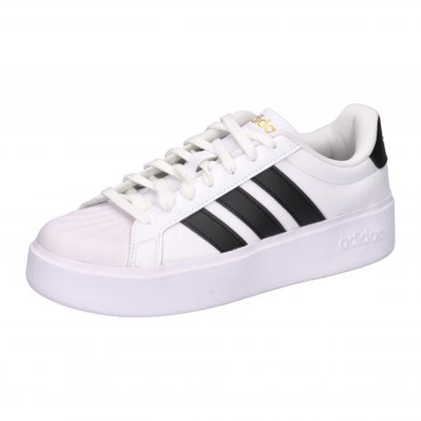 adidas Damen Sneaker Streettalk Bold. Dieser Streettalk Bold Schuh mit Inspiration aus den adidas Archiven ist echt was Besonderes. Das sleeke, strapazierfähige Obermaterial aus Synthetikleder passt super zu der erhöhten Gummi-Cupsohle und der Shell Toe, die echt cool aussehen. Innen sorgt ein weiches Textilfutter für dauerhaften Komfort und der Schnürverschluss gibt deinem Fuß den nötigen Halt. Mit 3-Streifen auf beiden Seiten und einem Monofit-Logo auf dem Obermaterial trägt dieser Schuh die DNA von adidas Originals und strahlt Selbstbewusstsein aus. Obermaterial: Sonstiges Material. Futter und Decksohle: Textil. Laufsohle: Sonstiges Material.