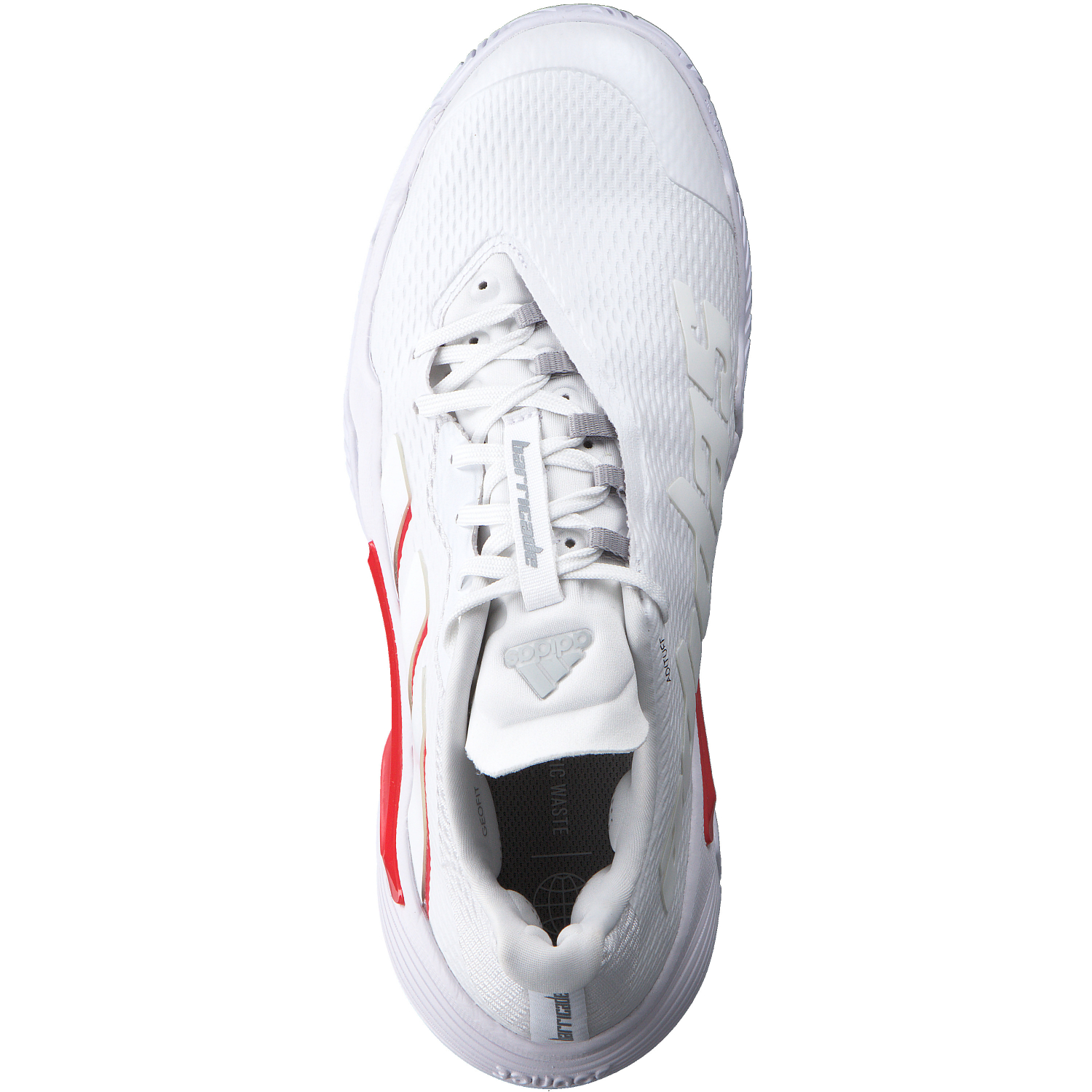 adidas Damen Tennisschuhe Barricade W. Der perfekte Schuh für Hartplätze. Das intuitive Schnürsystem des adidas Barricade garantiert dir optimalen Halt im Schuh und die anatomisch geformte Zunge aus Neopren passt sich dabei bequem an deinen Fuß an. Auch die Geofit Technologie im Fersenbereich lässt mit kleinen Schaumstoff-Inlays, den sogenannten Sensepods, den Schuh eins werden mit deinem Fuß. Außerdem gibt dir die Kombination aus dämpfender Bounce Zwischensohle und TPU im Mittelfußbereich Stabilität und Tragekomfort. Und damit du möglichst lange etwas vom adidas Branding auf der Fußinnenseite hast, ist der Schriftzug aus abriebfestem RPU. Intuitives Schnürsystem. Obermaterial aus Mesh. Abriebfester Adituff Zehenbereich. Geofit Sensepods. Vorgeformte TPU-Verstärkung. Bounce Zwischensohle. Adiwear Außensohle. Obermaterial aus mindestens 50% recycelten Materialien. Obermaterial: Textil. Futter und Decksohle: Textil. Laufsohle: Sonstiges Material.