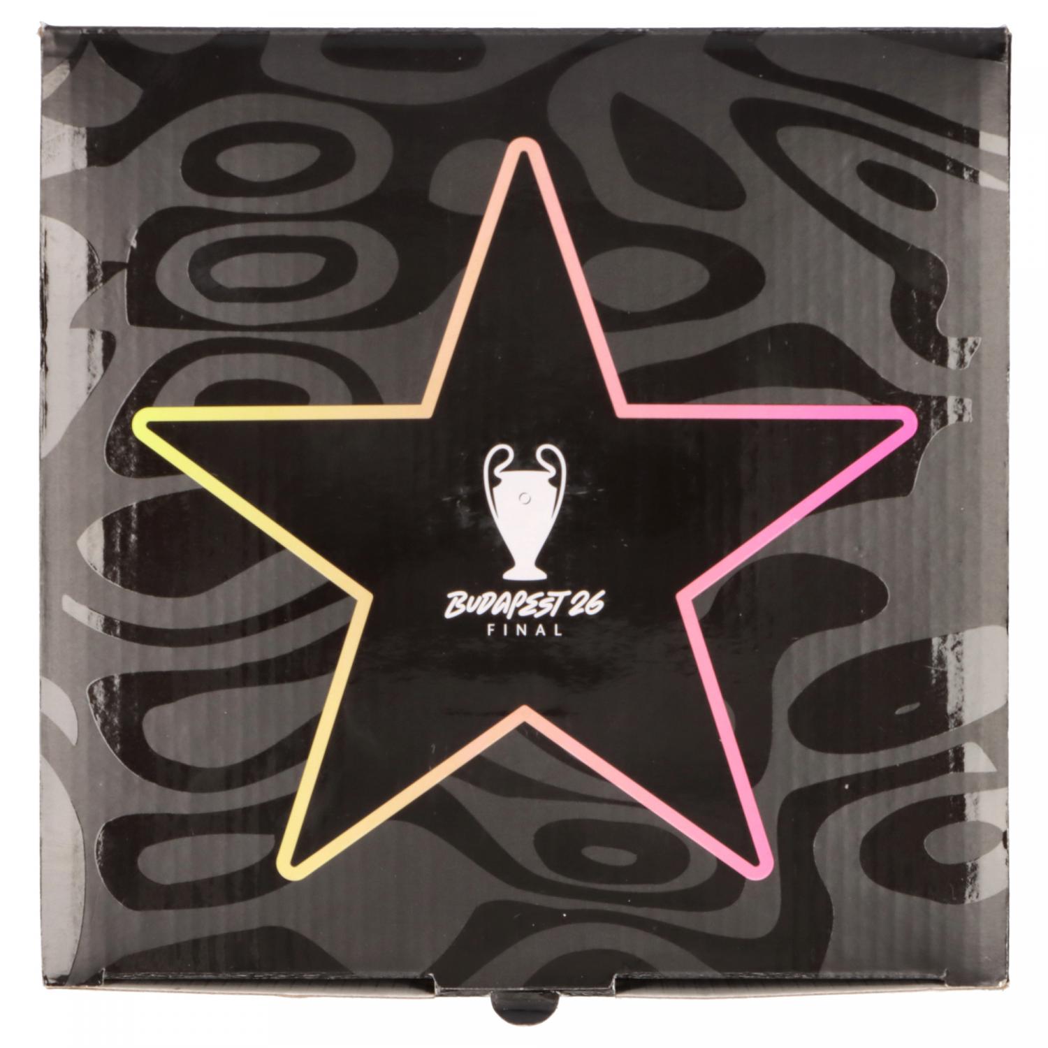 adidas Fussball UCL Finale Budapest 2026 Final League Box. Der UEFA Champions League Final League Box Fußball wurde für alle entwickelt, die für das Spiel leben. Er bietet eine nahtlose Mischung aus dauerhafter Haltbarkeit und Performance. Seine TPU-laminierte Oberfläche ist besonders langlebig. Dank FIFA-Qualitätszertifizierung weißt du, dass dieser Ball strenge Tests in Bezug auf Umfang, Gewicht, Rückprall und Wasseraufnahme bestanden hat und somit für verschiedene Bedingungen geeignet ist. Ob du deine Skills trainierst oder ein Wettkampfspiel bestreitest – dieser Ball liefert Kontrolle und Präzision. adidas setzt immer wieder neue Maßstäbe für sportliche Leistung, und dieser Fußball ist da keine Ausnahme. Material: 100% Polyurethan.