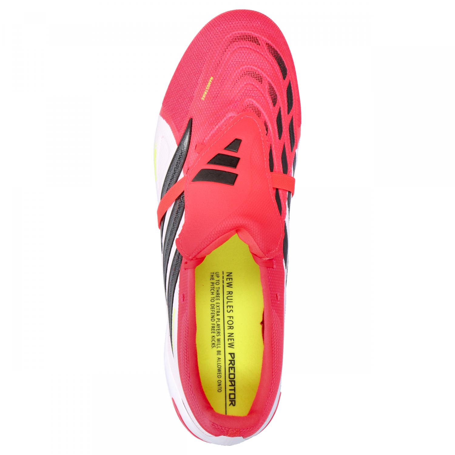 adidas Predator League FT AG. Mit dem Predator League Fold-Over Tongue Artificial Ground Fußballschuh hast du das Tor immer im Blick. Er wurde für alle entwickelt, die Präzision verlangen, und punktet mit einem Nanostrike Obermaterial mit weichem Mesh und einem Overlay, das optimalen Ballkontakt ermöglicht. Die Powerspine Technologie sorgt für Stabilität und Kraft im Mittelfußbereich, damit du deine härtesten Schüsse entfesseln kannst. Die Synthetikaußensohle bietet zuverlässigen Grip auf Kunstrasen. Die legendäre umschlagbare Zunge ist eine Hommage an die Fußballtradition von adidas und bietet eine glatte Schussfläche, damit die Schnürsenkel dich nicht von deinem Traumtor abhalten. Obermaterial: Sonstiges Material. Futter und Decksohle: Sonstiges Material. Laufsohle: Sonstiges Material.