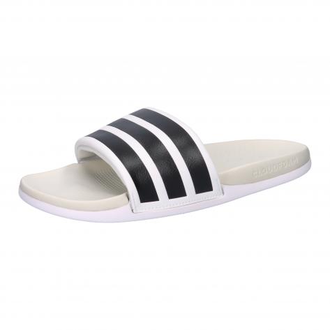 adidas Herren Badeschlappen Adilette Comfort 2.0. Die Adilette Comfort 2.0 Badeschlappen bringen den lässigen Style auf ein ganz neues Level. Mit Cloudfoam-Dämpfung und klassischem Design bieten diese vielseitigen Badeschlappen Stil und Komfort für den Alltag. Das Cloudfoam-Fußbett bietet bei jedem Schritt ein ultraweiches Komforterlebnis mit zusätzlicher Dämpfung. Der gepolsterte Riemen schmiegt sich an deinen Fuß an, sodass du mühelos und lässig in sie hineinschlüpfen kannst. Ob beim Chillen am Pool, beim Spazierengehen oder beim Entspannen zu Hause, diese Badeschlappen sind dein Partner für lässigen Komfort. Obermaterial: Sonstiges Material. Futter und Decksohle: Textil, Sonstiges Material. Laufsohle: Sonstiges Material.