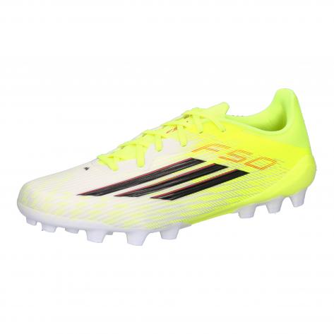 adidas Herren Fussballschuhe F50 LEAGUE 2G/3G AG. F50 League 2G/3G Fußballschuh, Kunstrasen ist für alle gemacht, die auf dem Spielfeld auf Tempo gehen. Erlebe die Performance und präzise Technik von adidas mit einem besonders leichten Tragegefühl, das dich nach vorne treibt. Das strapazierfähige Fiberskin Obermaterial verfügt über strategisch platzierte 3D-Linien für verlässlichen Ballkontakt, während die Sprintplate 360 Außensohle mit TPU-Einsätzen für Strapazierfähigkeit und Abriebresistenz sorgt. Ausgestattet mit 23 oval geformten, nicht abnehmbaren Stollen für gleichmäßige Druckverteilung auf kurzen Kunstrasenflächen. Die elastische Tunnel-Zunge mit TPU-Verstärkungen gewährleistet sicheren Halt und optimale Fixierung bei hohem Spieltempo. Abgerundet wird das Design durch den Sprintgrid 2D-Mudguard-Print, die adidas 3-Streifen und das F50 Logo, die den sportlichen Look unterstreichen. Gehe jedes Match mit Selbstvertrauen an, denn dieser innovative und stylishe Fußballschuh von adidas wurde speziell für Champions entwickelt. Obermaterial: Sonstiges Material, Textil. Futter und Decksohle: Textil. Laufsohle: Sonstiges Material.