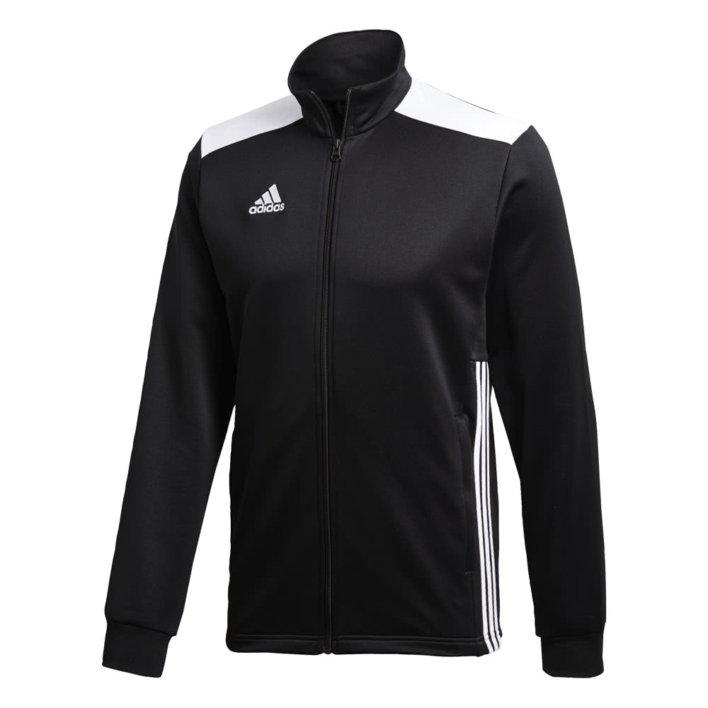 adidas Herren Polyesterjacke Regista 18. Skills und Technik sind das Ergebnis von konsequentem Training bei allen Bedingungen. Diese Fußballjacke für Männer sorgt mit feuchtigkeitsableitendem Aeroready für ein angenehm trockenes Tragegefühl und schützt dich mit ihrem durchgehenden Reißverschluss und einem Stehkragen vor Wind und Wetter. Die 3-Streifen an den Seiten sorgen für einen sportlichen Look. Aeroready leitet Schweiß von der Haut ab. In die Seitennaht eingearbeitete Reißverschlusstaschen. Durchgehender Reißverschluss; Stehkragen; Aufhängeschlaufe. Rippbündchen. 3-Streifen an den Seiten. Gewebtes adidas Logo auf der Brust. Material: 100% Polyester.
