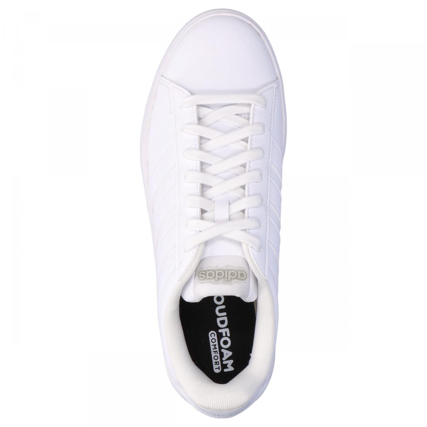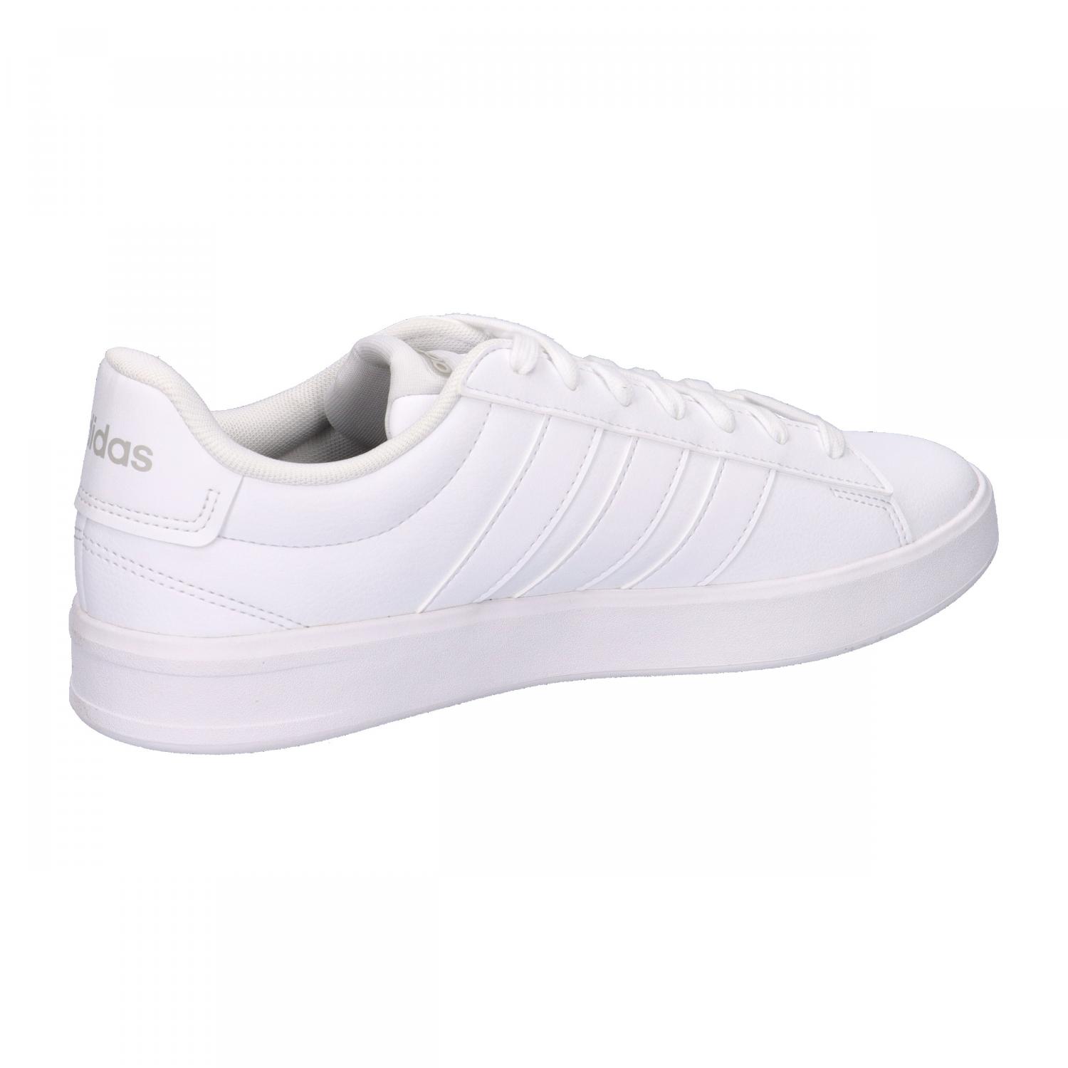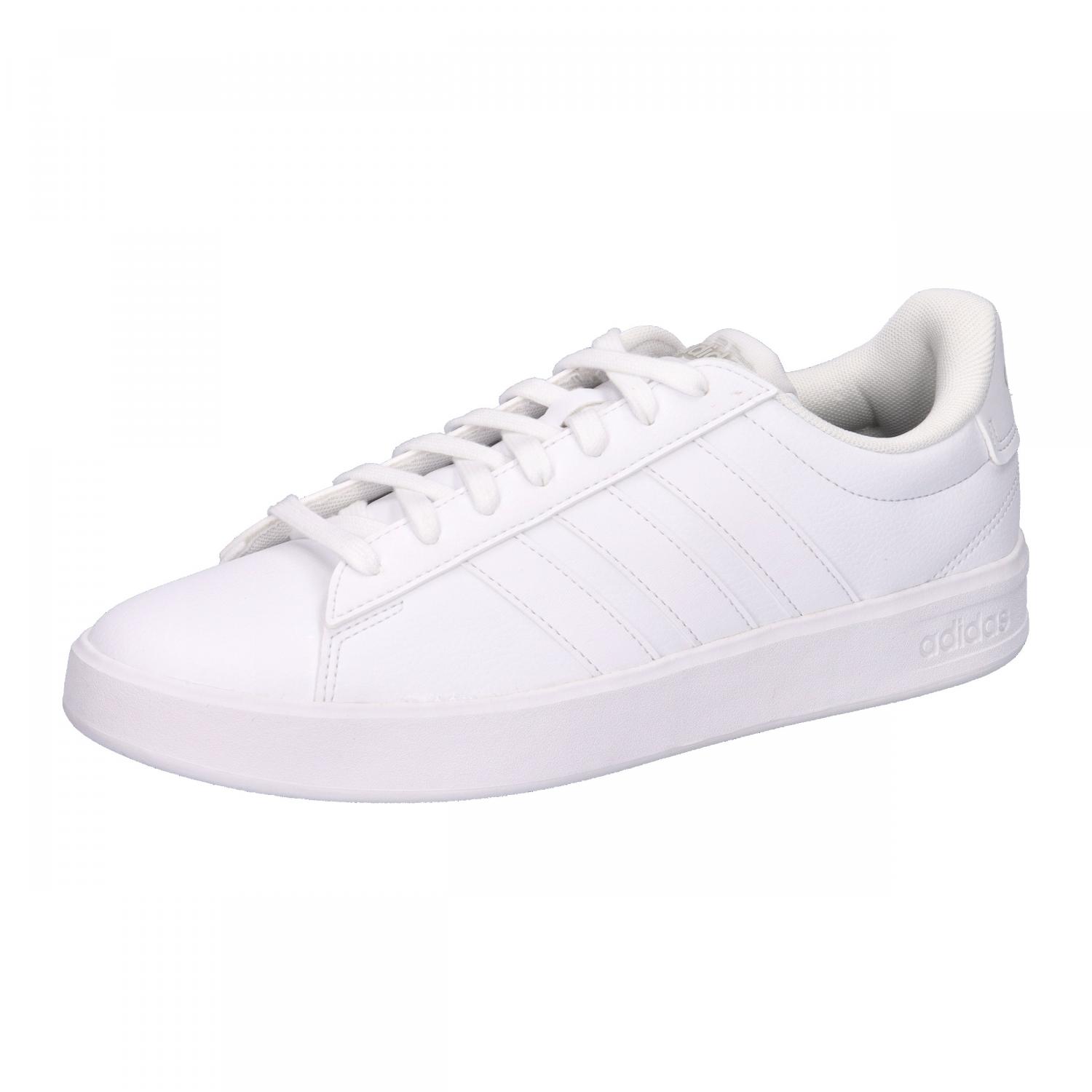 adidas Herren Sneaker GRAND COURT 3.0. Der Grand Court 3.0 ist zurück und setzt ein Statement. Dieses Modell zitiert den klassischen Court-Stil, aber mit einem modernen Twist mit mehr Dämpfung und weniger Gewicht. Das griffige Synthetik-Obermaterial sorgt für Style, und die kultigen 3-Streifen an den Seiten machen das adidas Erbe unverkennbar. Grip und Strapazierfähigkeit dank der Gummiaußensohle machen diese Schuhe zum Must-have für alle Streetstyle-Fans. Die Cloudfoam Technologie bietet ganzheitlichen Tragekomfort. Durch die zusätzliche Dämpfung fühlt sich jeder Schritt federleicht an. Ob beim entspannten Treffen oder beim Erkunden der Stadt sind diese Schuhe sind deine perfekte Wahl für Style und Komfort. Mach dir den Geist des rebellischen Optimismus zu eigen und werte deinen Alltag mit jeden Tragen auf. Obermaterial: Sonstiges Material, Textil. Futter und Decksohle: Sonstiges Material. Laufsohle: Sonstiges Material.