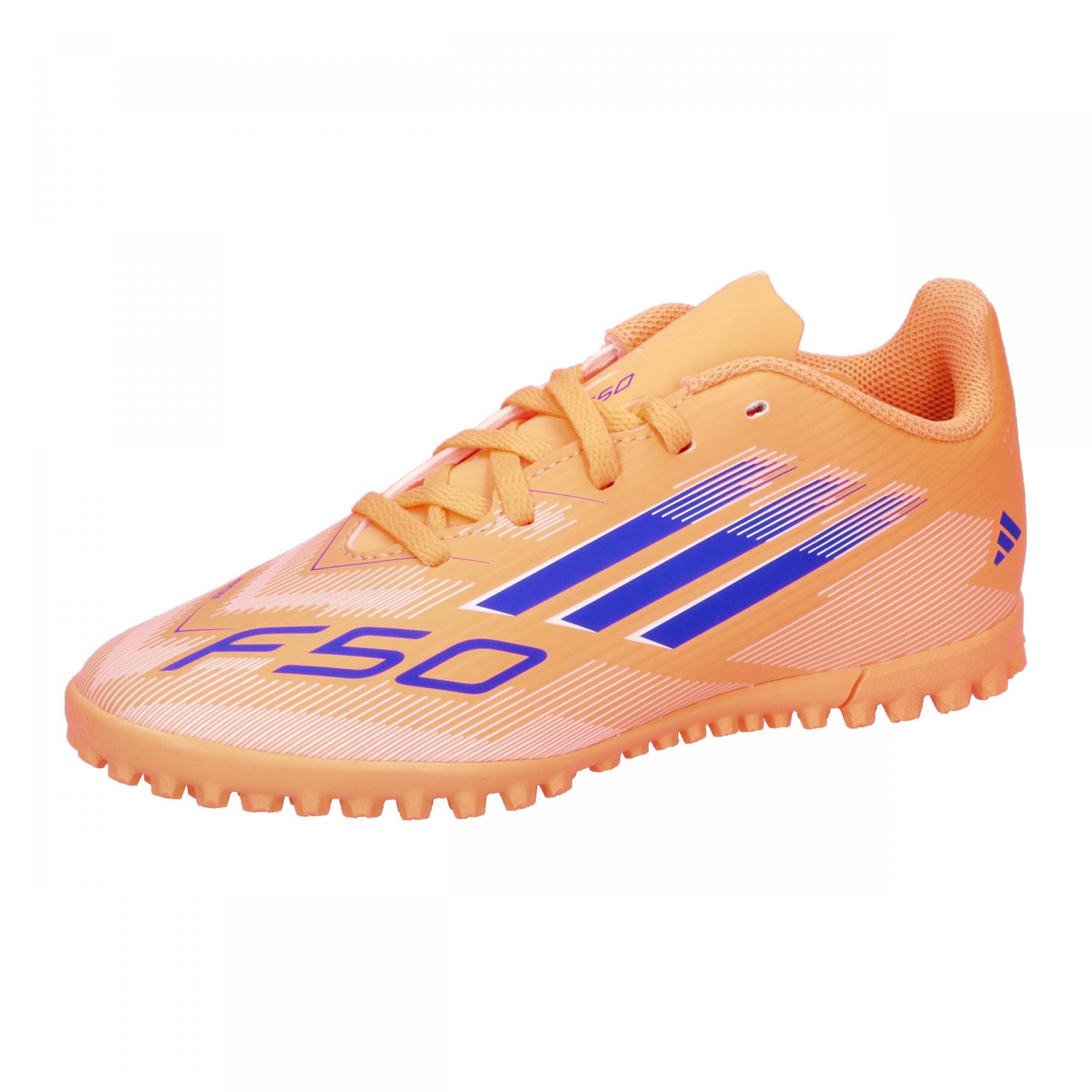 adidas Kinder Fussballschuhe F50 CLUB TF J. Zeig, wer du auf dem Spielfeld bist. Spür den Kick mit dem adidas F50 Fußballschuh für ultimativen Speed. Die Club-Version für Kinder und Teens mit leichtem Synthetik-Obermaterial und perforierter Zunge für hohen Tragekomfort und Beweglichkeit. Auf der anderen Seite eine Gummilaufsohle mit Stollen, die ein schnelles Spiel auf Kunstrasen unterstützt. Reguläre Passform. Schnürverschluss. Obermaterial aus Synthetik. Textilfutter. Gummilaufsohle für Kunstrasen. Obermaterial: Sonstiges Material. Futter und Decksohle: Textil. Laufsohle: Sonstiges Material.