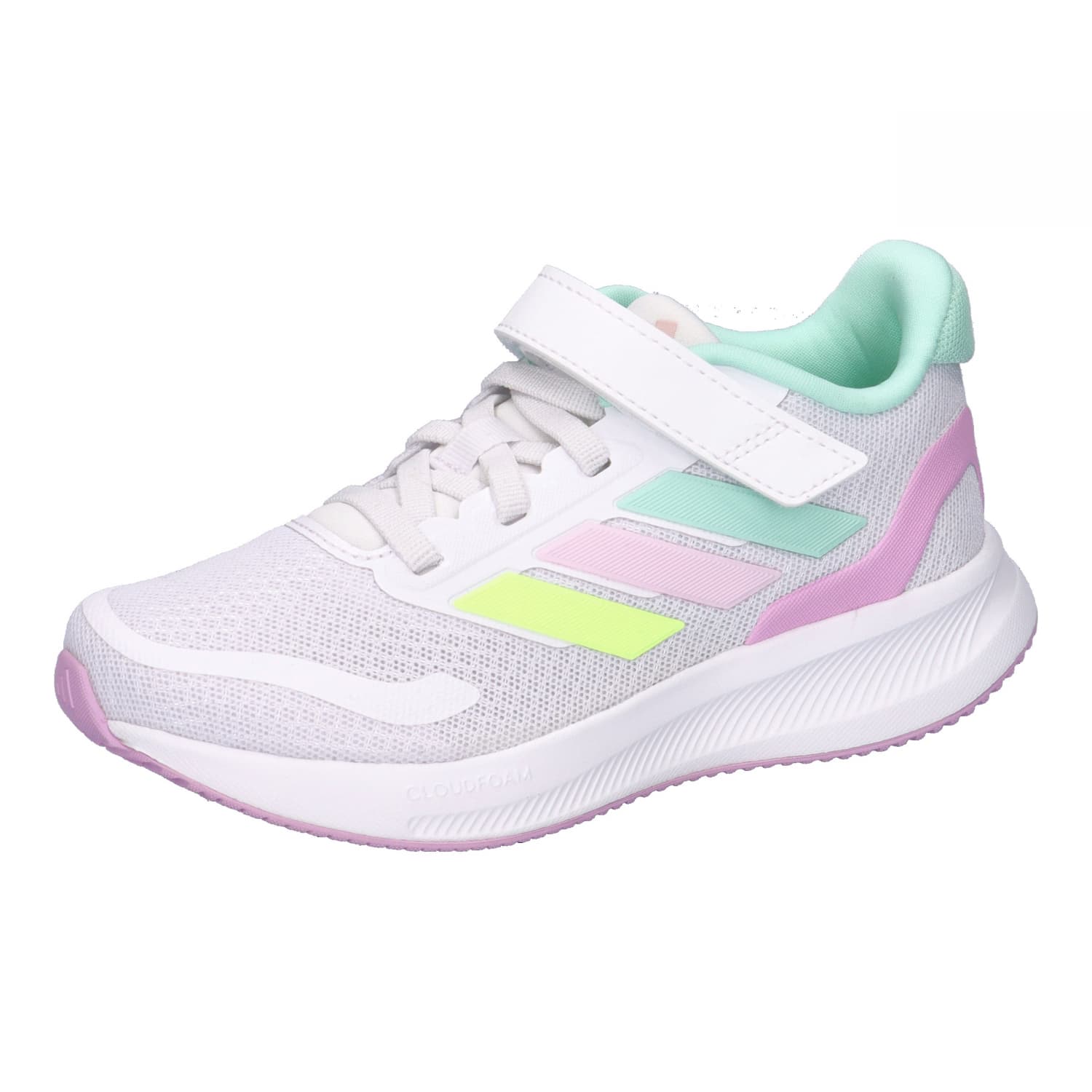 adidas Kinder Laufschuhe Runfalcon 5 EL C. Mit diesem Schuh können Kinds ihrer Energie freien Lauf lassen. Dieser adidas Schuh für Kinder hat eine weiche Cloudfoam Zwischensohle, die für ein superbequemes Tragegefühl sorgt. Ob für Sport oder Freizeit, Schuhewechseln ist nicht mehr nötig. Der klassische, sportliche Look passt immer. Check. Mit einem Recycling-Anteil von mindestens 50 % im Obermaterial ist dieses Produkt nur eine unserer Lösungen im Kampf gegen Plastikmüll. Obermaterial: Textil, Sonstiges Material. Futter und Decksohle: Textil. Laufsohle: Sonstiges Material.