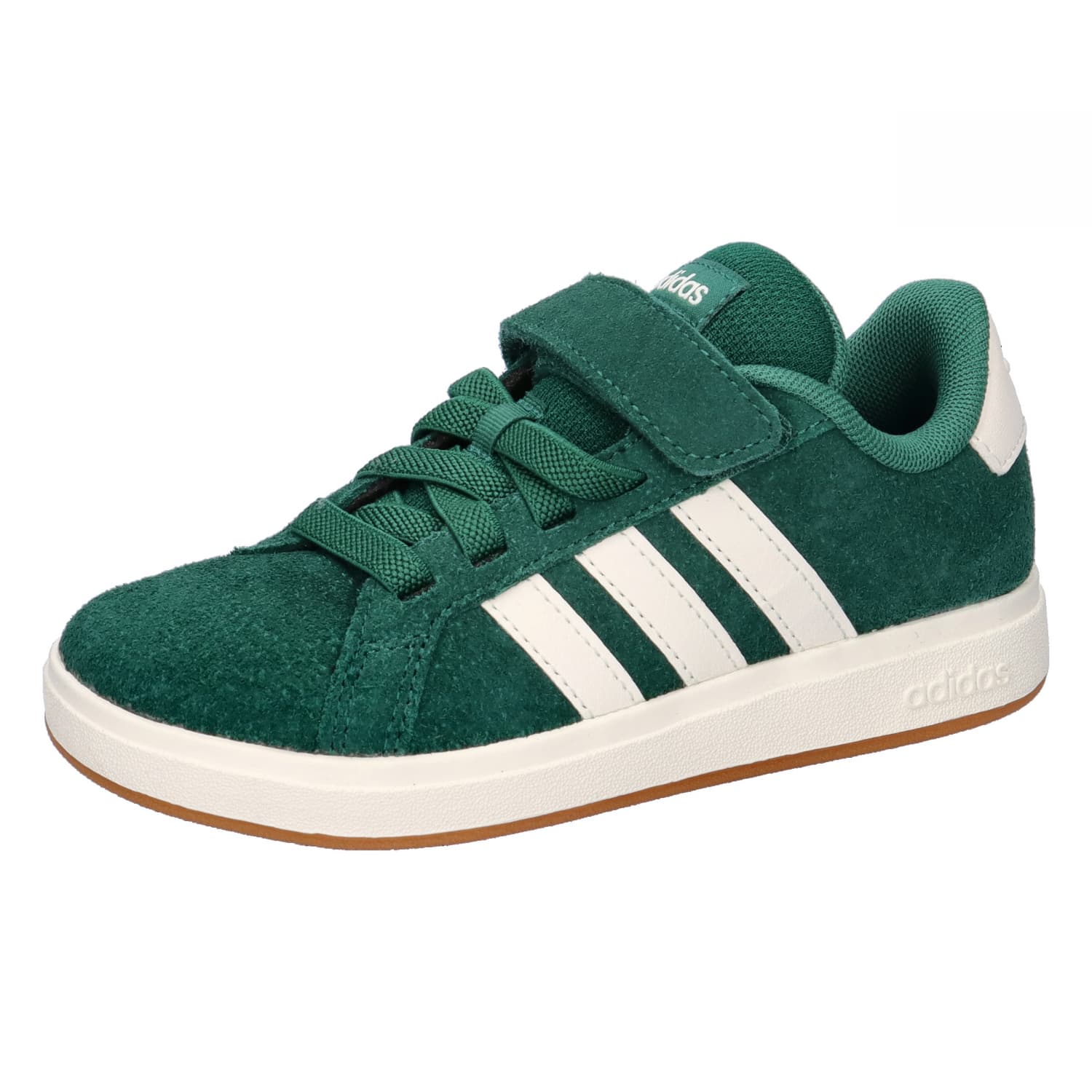 adidas Kinder Sneaker GRAND COURT 00s EL C. Mit diesem adidas Schuh für Kinder ist dein kleiner Schatz bereit fürs Spielen und Toben. Er hat ein Obermaterial aus weichem Wildleder, eine breite, elastische Schnürung und einen Klettverschlussriemen für einen sicheren, bequemen Sitz. Die gepolsterte Zunge versprüht außerdem lässigen 2000er-Vibe. Egal, ob auf dem Spielplatz oder beim Chillen, dieser Schuh sorgt für einen coolen Look und ein angenehmes Tragegefühl. Elastische Schnürsenkel; Klettverschlussriemen. Obermaterial aus Wildleder und Synthetik. Gepolsterte Zunge. Obermaterial: Leder, Textil. Futter und Decksohle: Textil. Laufsohle: Sonstiges Material.
