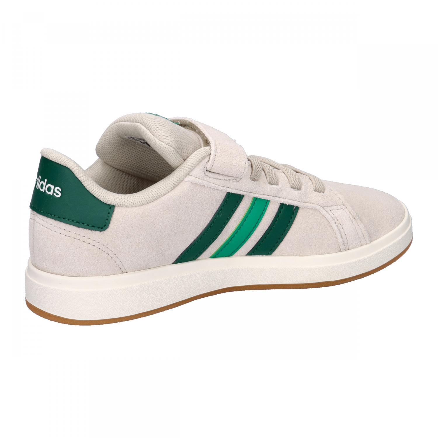 adidas Kinder Sneaker GRAND COURT 00s EL C. Mit diesem adidas Schuh für Kinder ist dein kleiner Schatz bereit fürs Spielen und Toben. Er hat ein Obermaterial aus weichem Wildleder, eine breite, elastische Schnürung und einen Klettverschlussriemen für einen sicheren, bequemen Sitz. Die gepolsterte Zunge versprüht außerdem lässigen 2000er-Vibe. Egal, ob auf dem Spielplatz oder beim Chillen, dieser Schuh sorgt für einen coolen Look und ein angenehmes Tragegefühl. Elastische Schnürsenkel; Klettverschlussriemen. Obermaterial aus Wildleder und Synthetik. Gepolsterte Zunge. Obermaterial: Leder, Textil. Futter und Decksohle: Textil. Laufsohle: Sonstiges Material.