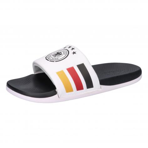 adidas Unisex Badeschlappen Adilette Comfort DFB. Der Adilette Comfort 2.0 Deutschland Badeschlappen verbindet Tradition mit modernem Design. Mit einer regulären Passform und einem verstellbaren Riemen sorgt er für einen sicheren Sitz, Komfort und Qualität. CLOUDFOAM Dämpfung hilft, den Druck bei jeder Bewegung zu reduzieren. Die leichte Außensohle aus Synthetik bietet zuverlässigen Grip, das glatte Futter erleichtert das Hineinschlüpfen. Dieser vielseitige Badeschlappen eignet sich für den Gebrauch in verschiedenen Umgebungen. Sein cleanes Design verbindet zeitloses adidas Styling mit einem Fokus auf Komfort und macht ihn zu einer beliebten Wahl für die Freizeit. Obermaterial: Sonstiges Material. Futter und Decksohle: Textil. Laufsohle: Sonstiges Material.