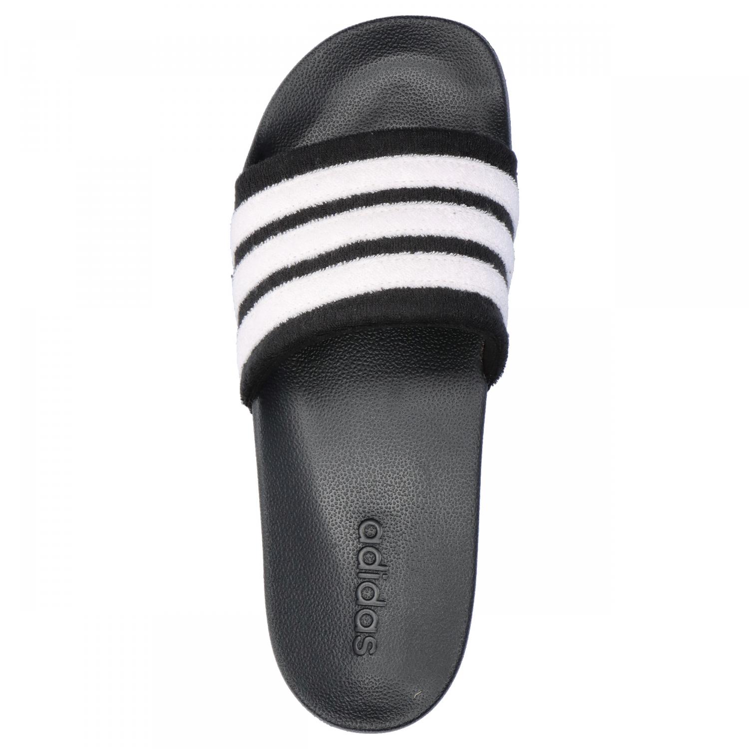adidas Unisex Badeschlappen Adilette Noshower. Die Adilette Noshower Badeschlappe ist dein Favorit, wenn du Wert auf mühelosen Style und Komfort legst. Die weltberühmte Adilette feierte ihr Debüt im Jahr 1972. Heute ist sie beliebter denn je. Dieses Modell ist eine Neuinterpretation mit einem farblich abgestimmten, weichen Bandage-Design, das einen frischen Look auf einen Klassiker bringt. Schlüpf rein und genieße das bequeme Nylon-Obermaterial und das kuschelige, gepolsterte Fußbett. Dank der Cloudfoam-Technologie fühlt sich jeder Schritt an, als würdest du auf Wolken schweben. Damit sind diese Schuhe die perfekte Wahl, egal ob du unterwegs bist oder zu Hause bleibst. Mit dem charakteristischen 3-Streifen-Logo von adidas bieten diese Slides nicht nur Komfort, sondern sind auch ein Statement für die sportliche Tradition von adidas. Kombiniere sie mit lässiger Streetwear oder genieße sie einfach beim Entspannen zu Hause – diese Badeschlappen wurden entwickelt, damit du dich entspannt und stylish fühlst. Obermaterial: Textil. Futter und Decksohle: Textil, Sonstiges Material. Laufsohle: Sonstiges Material.