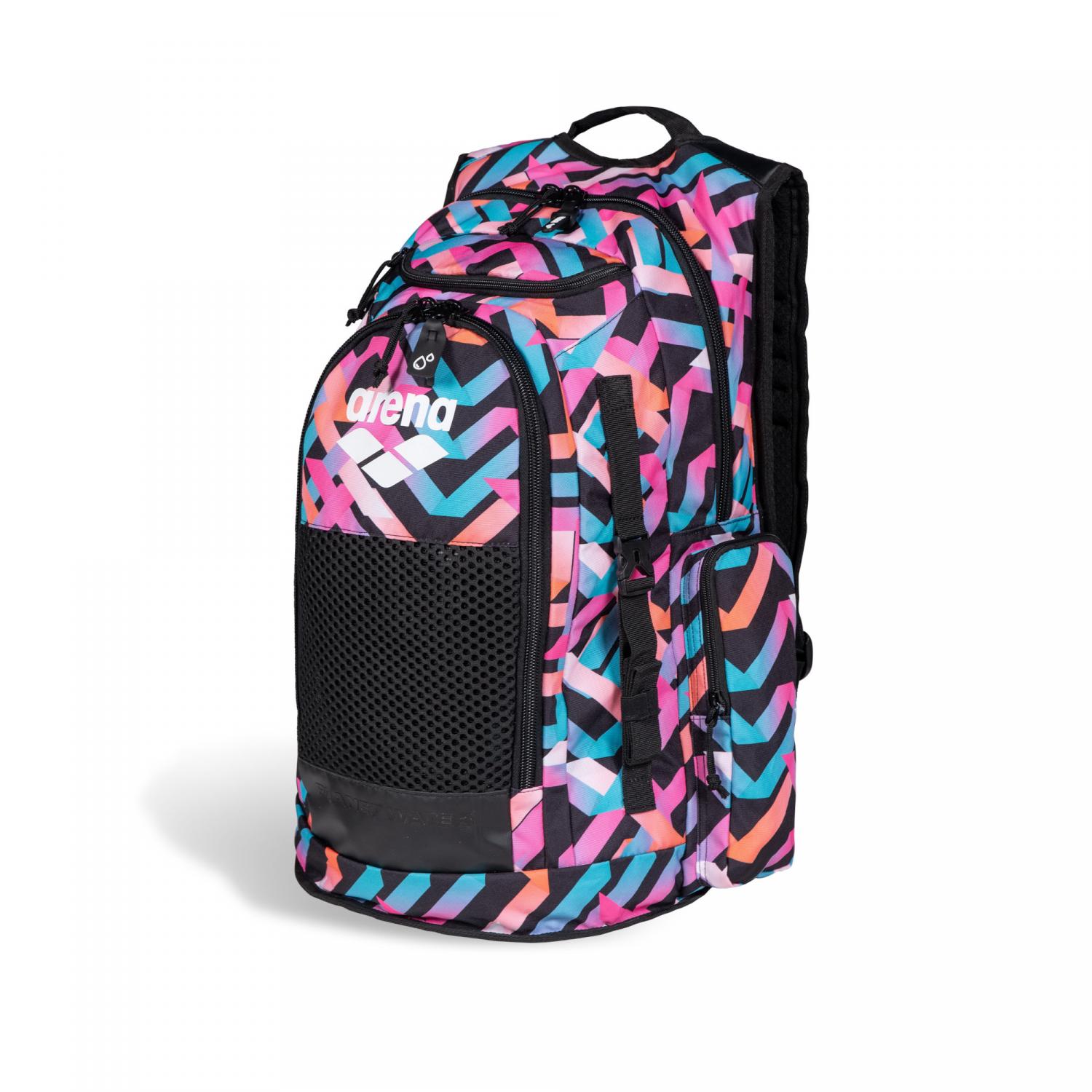 Arena Rucksack ALL SET BACKPACK 45L AO. Profitieren Sie vom cleveren Raummanagement des ultra-stylischen arena All Set Backpack Allover 45L, mit dem Sie all Ihre Sachen ganz einfach organisieren können. Ausgestattet mit Aquabreathe, dem neuen Nassmanagementsystem von arena, kombiniert er atmungsaktive Einsätze und wasserabweisende Stoffe zu einem fortschrittlichen Belüftungssystem, das Wasser abhält und Ihre Ausrüstung trocken hält. Zwei große Hauptfächer und zwei externe Fronttaschen mit Reißverschluss ermöglichen einen einfachen Zugriff auf Ihre gesamte Ausrüstung. Ausgestattet mit einer Laptophülle und einer zusätzlichen seitlichen Netztasche zur Aufbewahrung einer Wasserflasche. Mit einem cleveren Mattenhalter, einem Karabiner zum bequemen Aufhängen und einem praktischen Riemen zur sicheren Befestigung an einem Koffer. Abgerundet durch einen wasserabweisenden, verstärkten Boden und Hauptstoff schützt er Ihre Ausrüstung vor Feuchtigkeit und Schmutz. Das atmungsaktive, gepolsterte Rückenteil sorgt für bequemen und schweißfreien Transport. Maße: 55cm x 38cm x 28cm. Volumen: 45L. Material: 60% Polyester, 40% Polyamid.