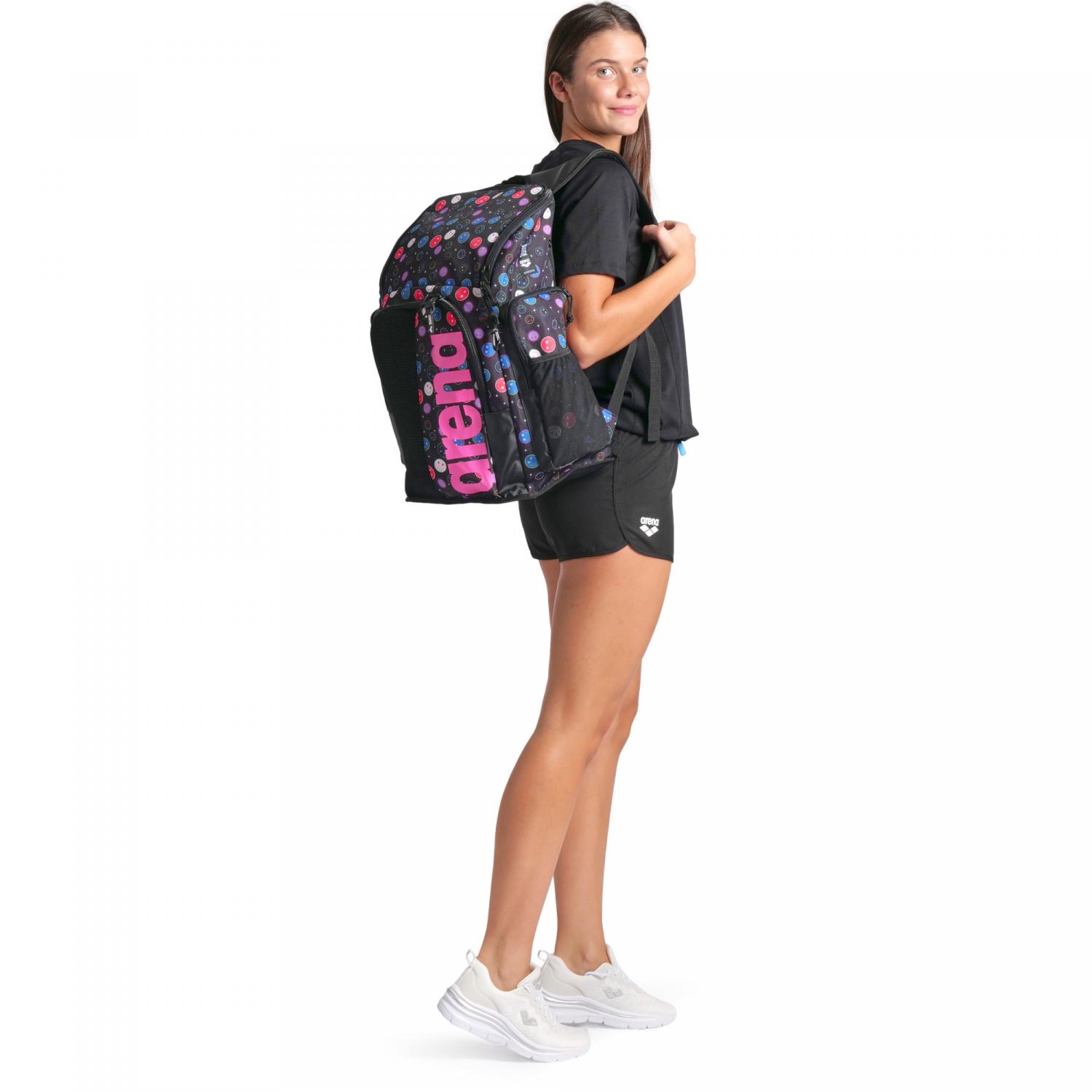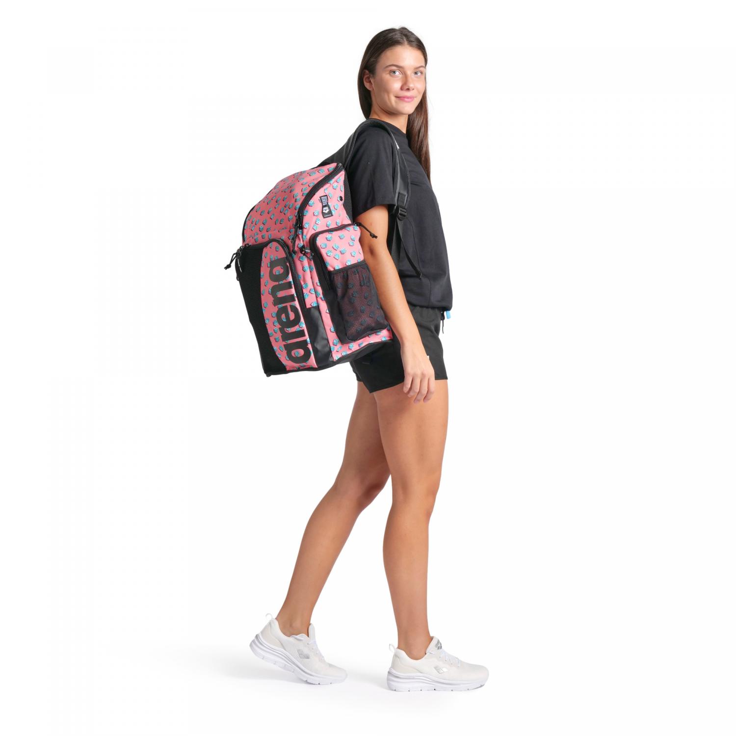 Arena Rucksack SPIKY III BACKPACK 45 ALLOVER. Wie der Name schon sagt, fasst unser Spiky III Allover Print Rucksack 45 bis zu 45 Liter. Das Top-Loading-Design erleichtert den Zugriff und die Organisation. Die Tasche verfügt über Netzfächer, um die Feuchtigkeit nach dem Schwimmen oder nach dem Training unter Kontrolle zu halten. Das wasserabweisende Gewebe und der verstärkte Boden schützen deine Tasche und ihren Inhalt vor Stürzen und nassen Böden. In den zahlreichen Fächern finden all deine Gegenstände einen sicheren Platz, und die Schwimmtasche eignet sich perfekt für deine Schwimmausrüstung. Wähle aus einer Reihe von frischen, aufregenden Mustern. Schützt deine Tasche oder deinen Rucksack vor Verschleiß und sorgt dafür, dass er immer stehenbleibt, wenn du ihn auf den Boden stellst. Das Material wurde so behandelt, dass es das Wasser vor dem Durchsickern abweist. Eine Kombination von Front- und Seitentaschen, die aus Mesh sind oder einen Reißverschluss haben. Abmessungen: 50 x 36 x 27 cm. Wasserabweisend, Ideal für die Aufbewahrung nasser Kleidung. Material: 100% Polyester.