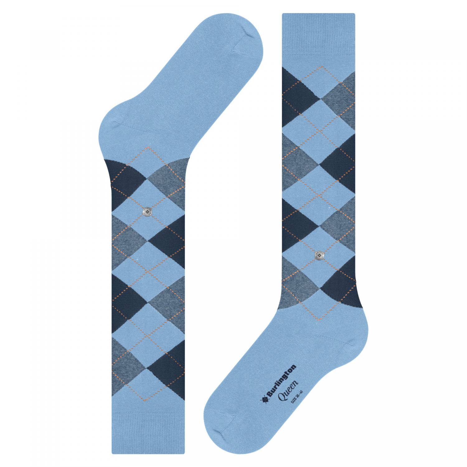 Burlington Damen Kniestrümpfe Queen KH. Bunt und modisch faszinieren diese Kniestrümpfe aus gekämmter Baumwolle. Das klassische Argyle-Muster bringt gute Laune mit, die softe Qualität sorgt für weichen Griff und ausgesprochen hohen Tragekomfort. Dabei bietet die große Farbauswahl – von jungen, modischen bis hin zum aktuellen Sneaker-Trend inspirierte Farbvarianten – tolle Styling-Möglichkeiten. Material: 67% Baumwolle, 33% Polyamid.