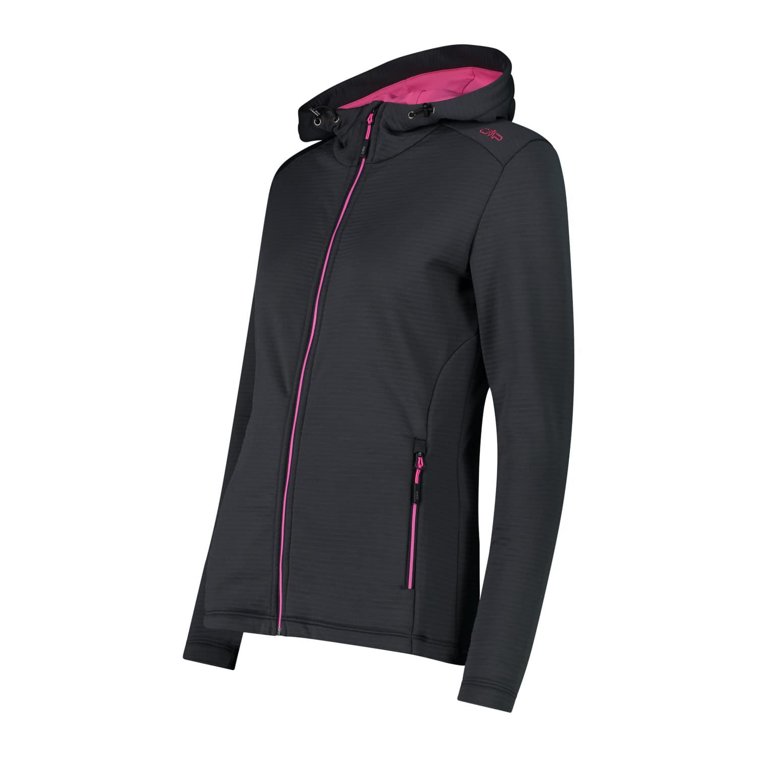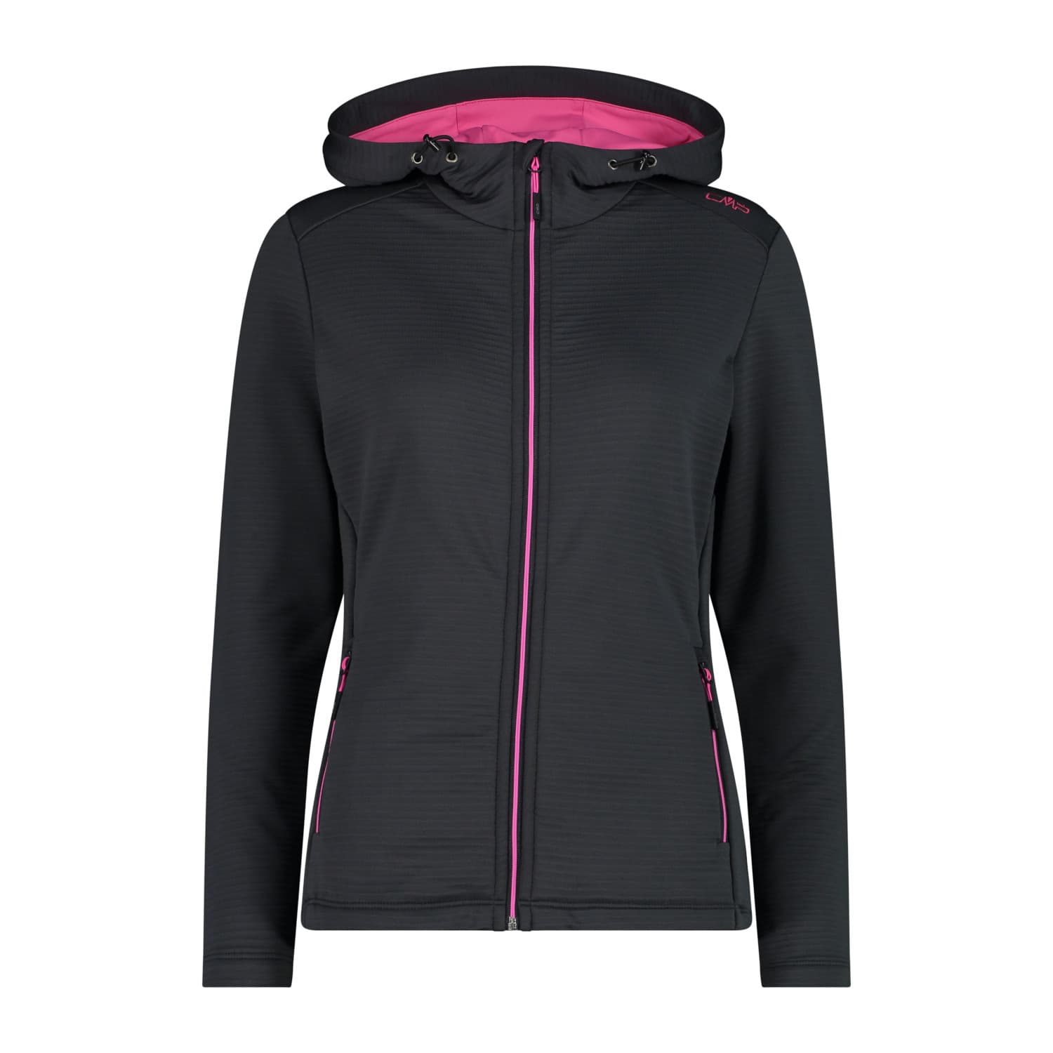 CMP Damen Fleecejacke Woman Jacket Fix Hood. Damen-Kapuzenfleece aus Jacquard-Gewebe mit spezieller schlauchförmiger Verarbeitung, die dem Kleidungsstück einen technischen Look verleiht. Stretch Performance ist ein Garn, das sich durch seine Leichtigkeit, Isolierung und Atmungsaktivität auszeichnet und leicht zu waschen und zu trocknen ist. Die Oeko-Tex-Zertifizierung garantiert, dass während des gesamten Herstellungsverfahrens ausschließlich für den Menschen und die Natur ungiftige Substanzen verwendet werden. Die Jacke mit durchgehendem Reißverschluss eignet sich perfekt als Outerlayer bei anspruchsvollen Aktivitäten oder Momenten der Entspannung, aber auch unter einer Jacke an kälteren Tagen, dank ihres geringen Volumens. Das Kleidungsstück wird durch eine feste Kapuze, die mit einer Kordel verstellt werden kann, elastische Einsätze an den Ärmeln und am Gesäß sowie zwei Seitentaschen vervollständigt. Material: 90% Polyester, 10% Elasthan. Kapuzeneinsatz: 95% Polyester, 5% Elasthan.