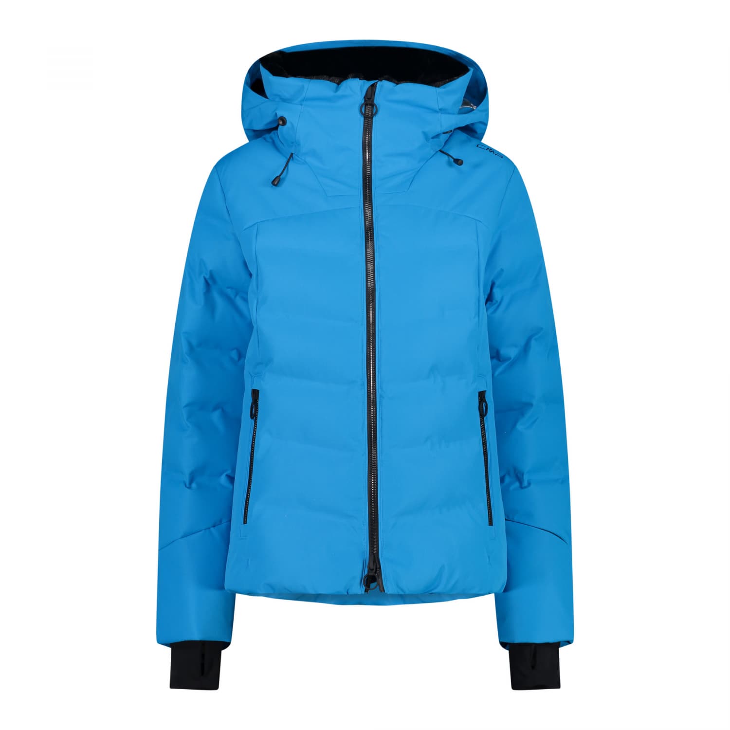 CMP Damen Skijacke Fix Hood Jacket. Diese multifunktionale, wattierte Jacke wurde entwickelt, um die Bedürfnisse der anspruchsvollsten Outdoor-Liebhaber zu befriedigen. Der schlichte Look eignet sich für den Lifestyle, während die zahlreichen Features wie der Schneefang ihn perfekt zum Skifahren machen. Er hat eine nahtlose Nahtkonstruktion mit diagonalen heißversiegelten Einsätzen und einem etwas längeren, ausgestellten Boden. Komfort wird durch den inneren Rücken und den Nacken gewährleistet hohen Loft-Komfort und durch das silberne Innenfutter aus Metall (unterer Rücken und innere Kapuze), das den Körper warm hält. Das Äußere hat eine wasserabweisende Behandlung (PFC-frei), die verhindert, dass Feuchtigkeit in das Kleidungsstück eindringt. Ein Kordelzug unten und eine verstellbare feste Kapuze, ein wasserdichter Frontreißverschluss mit zwei Schiebern mit einer winddichten Innenklappe und einer Anti-Scheuer-Abdeckung, Lycra-Bündchen und zwei Reißverschlusstaschen vervollständigen die Jacke. Material: 100% Polyester.