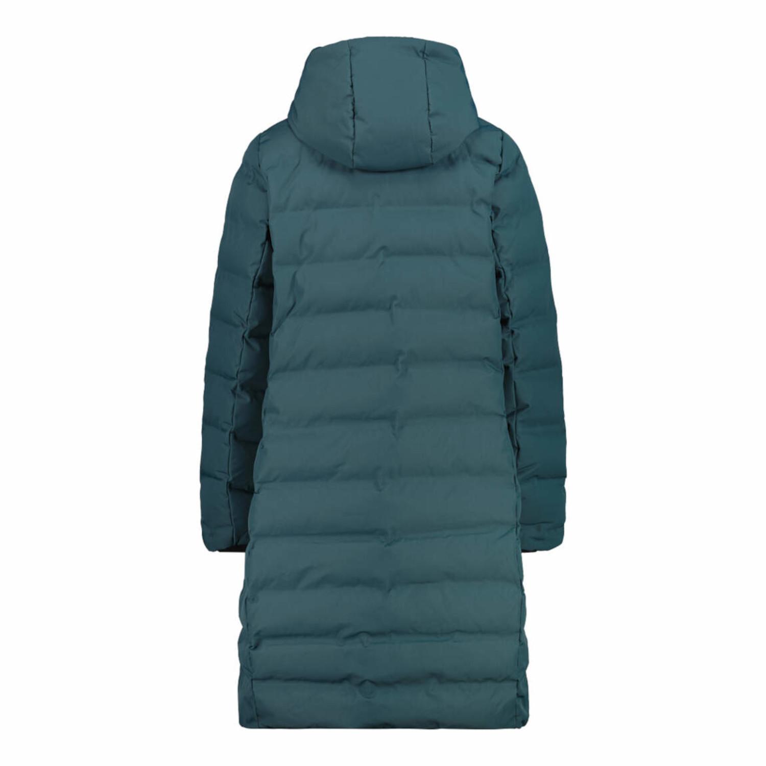 CMP Damen Mantel WOMAN COAT FIX HOOD. Langer Mantel für Damen, der an den härtesten Wintertagen hohen Wärmeschutz und Komfort bietet. Die Feel-Warm-Flock-Polsterung aus synthetischen Flockenfasern garantiert Wärme, Leichtigkeit und eine hervorragende Isolierfähigkeit und bietet Weichheit, Atmungsaktivität und Feuchtigkeitsbeständigkeit, auch bei Nässe. Die Clima-Protect-Membran zwischen den Stoffen schützt effektiv vor Wind und Regen, ohne die natürliche Atmungsaktivität des Körpers zu beeinträchtigen. Die wasserabweisende Außenbehandlung bietet eine zusätzliche Barriere gegen Feuchtigkeit und ist somit ideal für den täglichen Gebrauch und für Outdoor-Aktivitäten. Das lange Design schmiegt sich elegant an, während die fest angebrachte Kapuze für zusätzlichen Schutz sorgt. Ein technisches und raffiniertes Kleidungsstück, das entworfen wurde, um den Winter mit Funktionalität und Stil zu erleben. Futter: 100% Polyester. Füllung: 100% Polyester. Obermaterial: 100% Polyester.