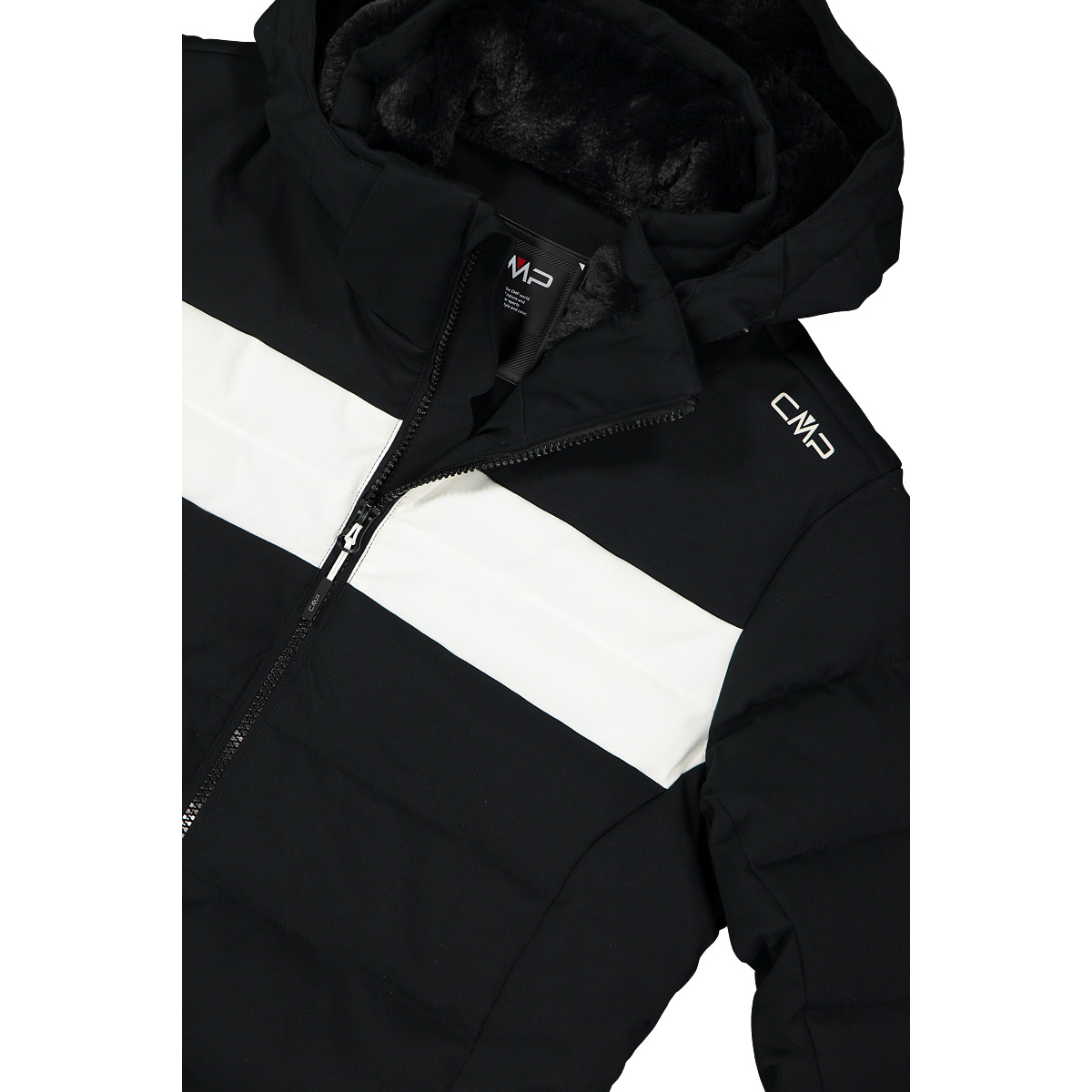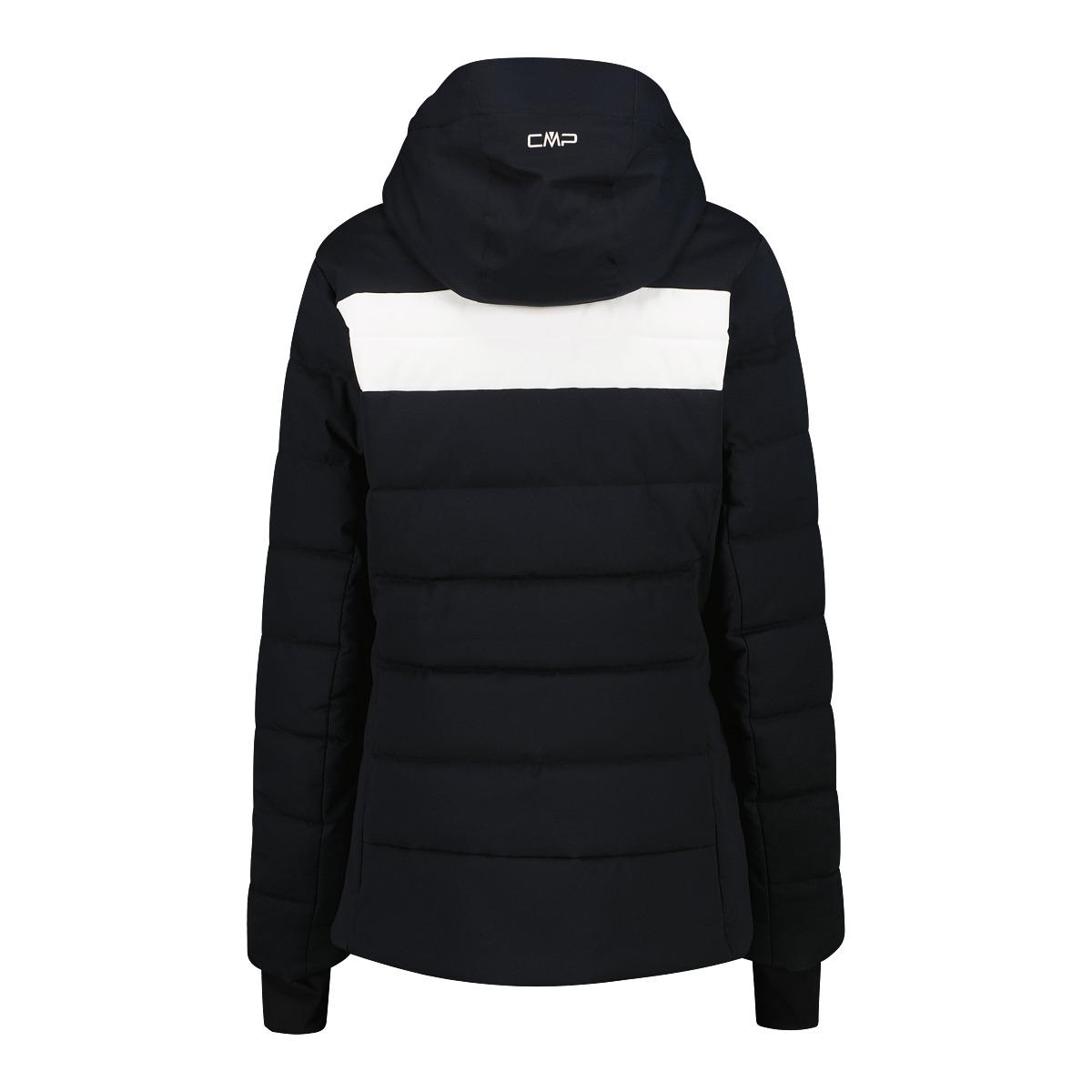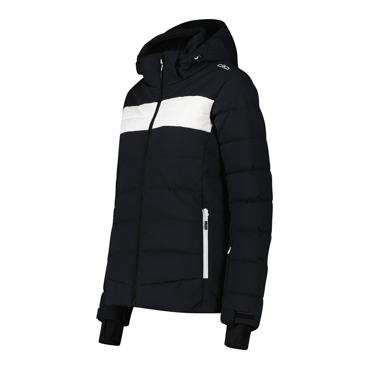 CMP Damen Skijacke aus mechanischem Stretch mit abnehmbarer Kapuze wattiert mit Feel Warm Flock, einer speziellen Synthetikfaser, die den Körper auch bei Nässe warm hält. Die Clima-Protect-Membran schützt zusammen mit der wasserabweisenden Behandlung vor Schnee und Wasser und hält die Atmungsaktivität hoch. Sowohl der WP- als auch der MVP-Index liegen bei 10.000. Das Kleidungsstück wird durch einen verstellbaren Saum, Lycra-Bündchen mit Daumenöffnung, Frontreißverschluss mit windfester Blende mit Scheuerschutz für das Kinn, zwei Seitentaschen mit Reißverschluss, abnehmbaren Innenstulpen und Skipass-Tasche am Ärmel vervollständigt. Technologie: Clima Protect®; Feel Warm Flock; Water Repellent. Gewicht: 1060 g. Länge: 70 cm. Material: 100% Polyester. Futter: 100% Polyester. Wattierung: 100% Polyester.