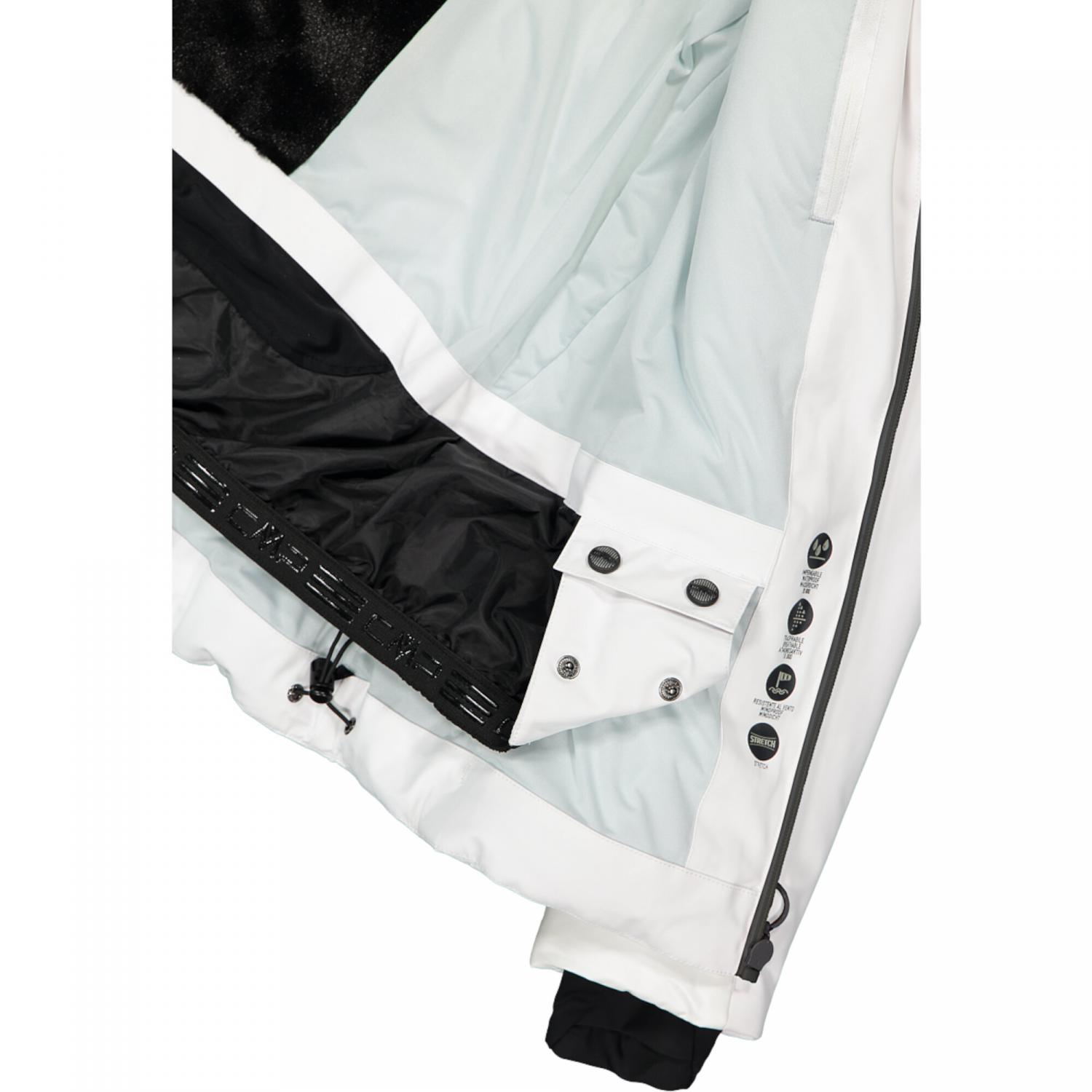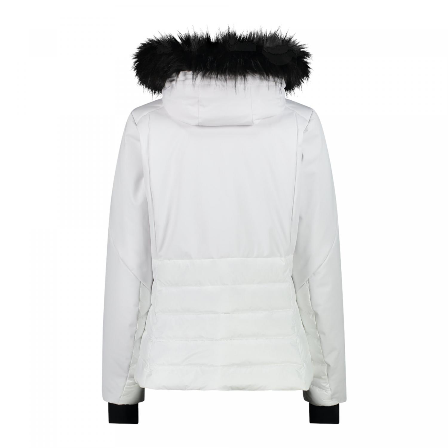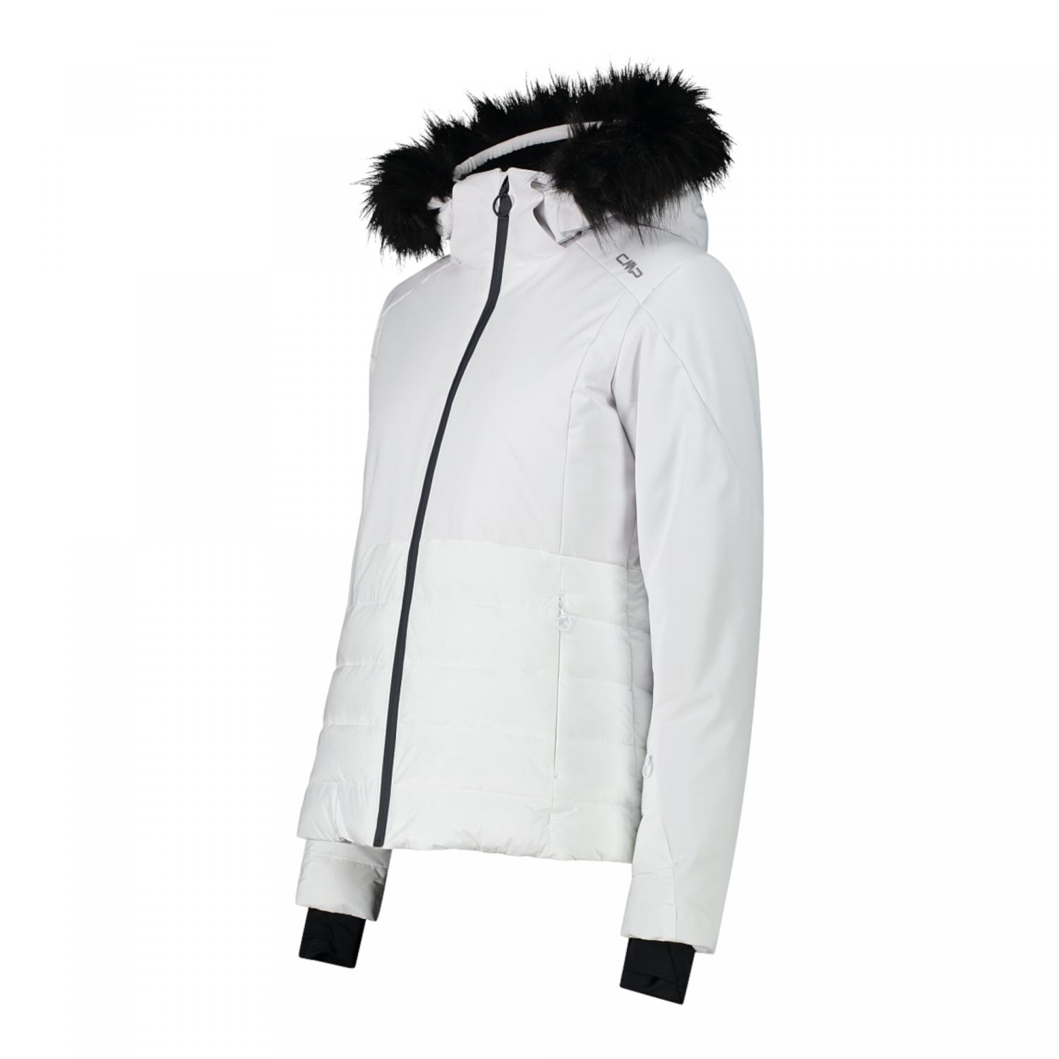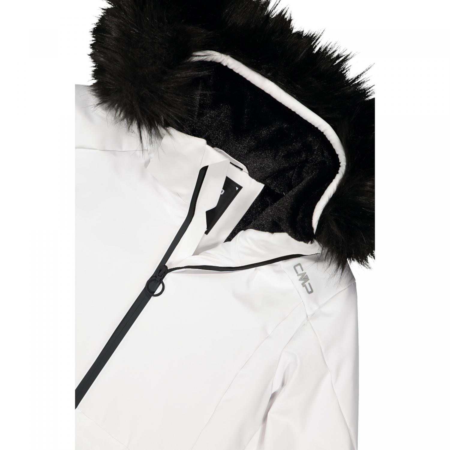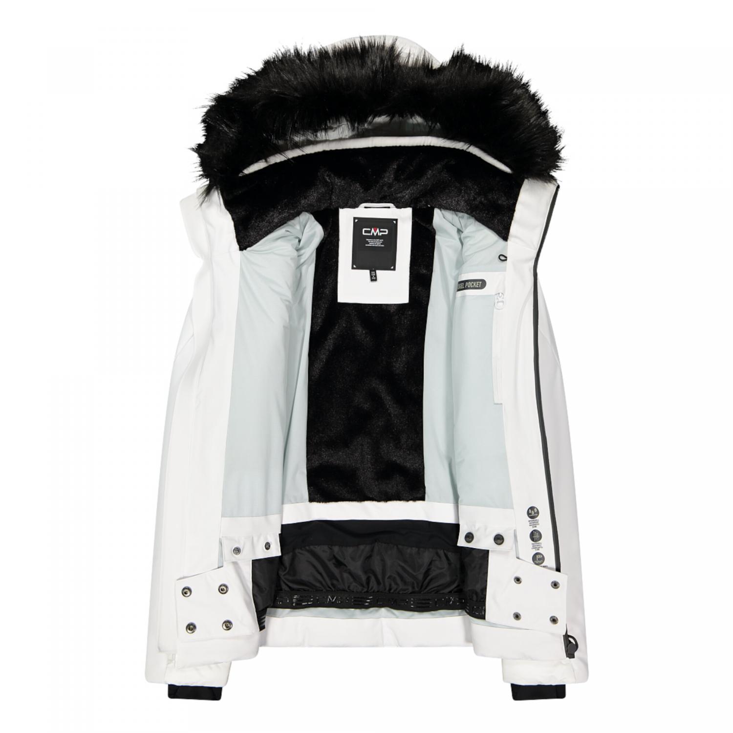 CMP Damen Skijacke aus mechanischem Stretch mit abnehmbarer Kapuze wattiert mit Feel Warm Flock, einer speziellen Synthetikfaser, die den Körper auch bei Nässe warm hält. Die Clima-Protect-Membran schützt zusammen mit der wasserabweisenden Behandlung vor Schnee und Wasser und hält die Atmungsaktivität hoch. Sowohl der WP- als auch der MVP-Index liegen bei 10.000. Das Kleidungsstück wird durch einen verstellbaren Saum, Lycra-Bündchen mit Daumenöffnung, Frontreißverschluss mit windfester Blende mit Scheuerschutz für das Kinn, zwei Seitentaschen mit Reißverschluss, abnehmbaren Innenstulpen und Skipass-Tasche am Ärmel vervollständigt. Technologie: Clima Protect®; Feel Warm Flock; Water Repellent. Gewicht: 1060 g. Länge: 70 cm. Material: 100% Polyester. Futter: 100% Polyester. Wattierung: 100% Polyester.