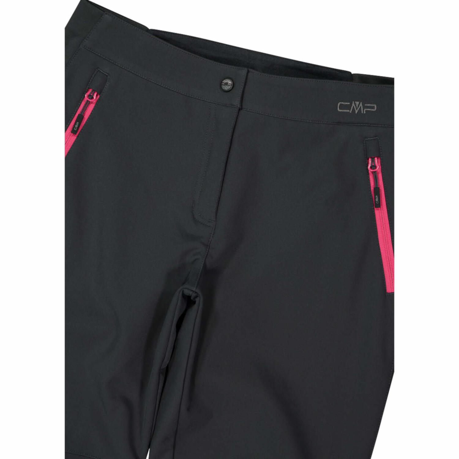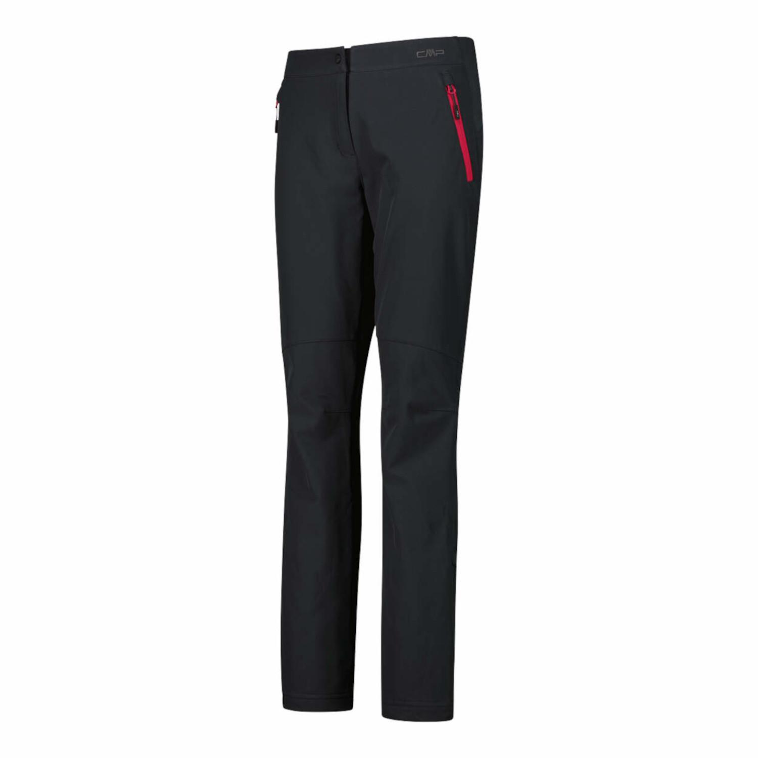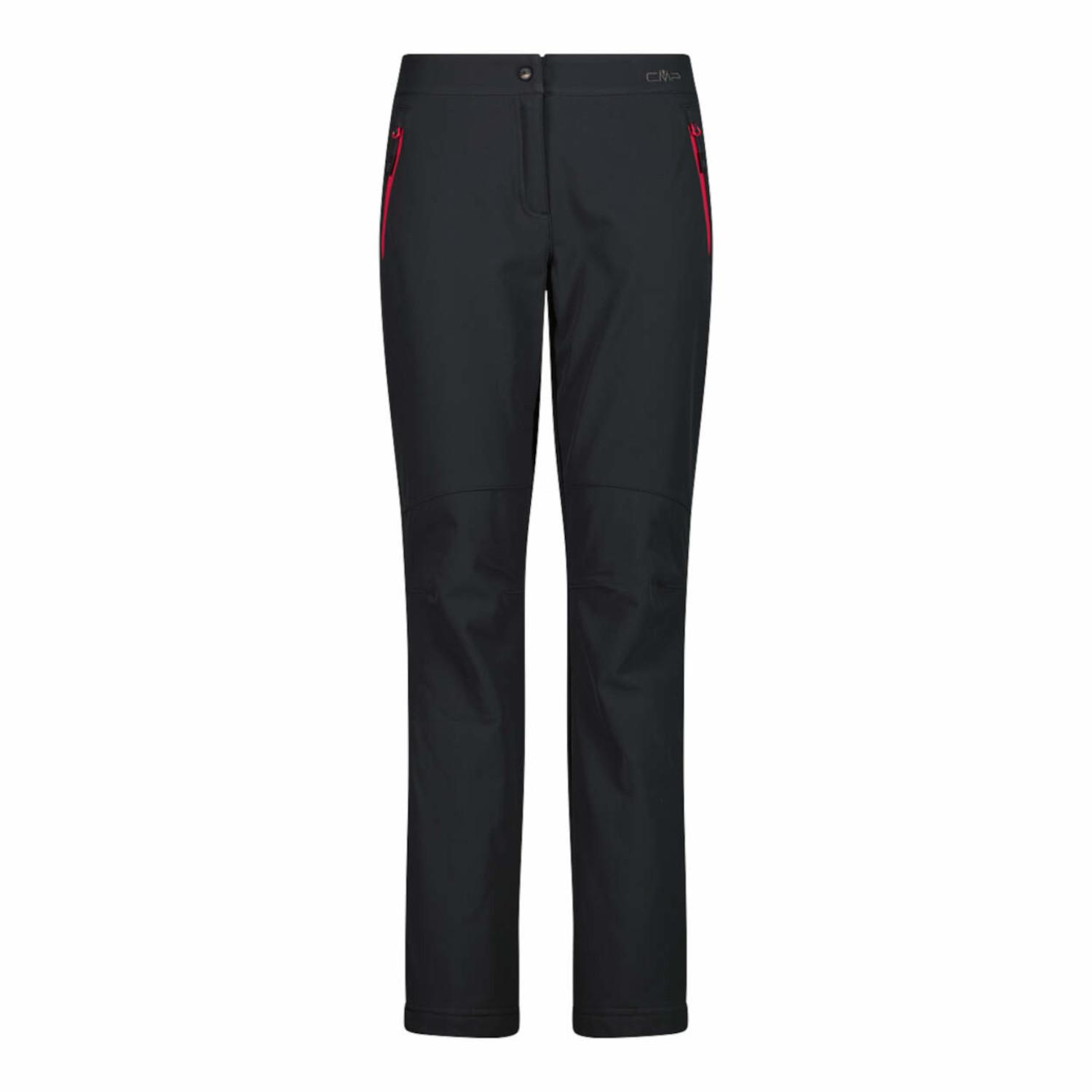 CMP Damen Softshellhose Woman Long Pant. Softshell-Hose mit Slim-Fit-Passform oben und an den Knien, die sich dem Körper anpasst, ohne die Bewegungsfreiheit einzuschränken. Die aufgeraute Innenschicht schenkt ein angenehmes Gefühl von Wärme auf der Haut. Zwischen den Gewebeschichten befindet sich die spezielle mikroporöse Clima-Protect-Membran, die Wetterschutz und zugleich Atmungsaktivität gewährleistet (Waterproof 7.000, MVP 3.000). Dehnbarer Bund mit klassischem Verschluss durch Knopf und Reißverschluss. Erhöhter Komfort und optimiertes Anliegen am Schuh dank vorgeformten Knien und seitlichen öffnungen am Beinende. Material: 96% Polyester, 4% Elasthan.