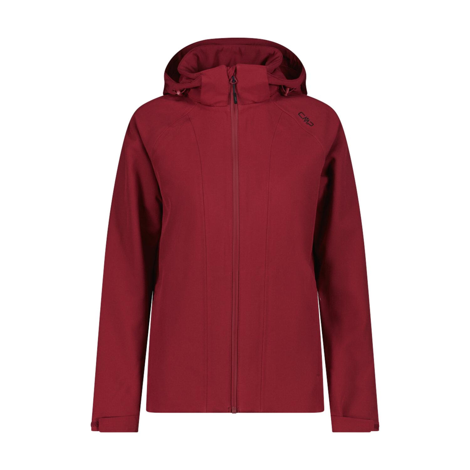 CMP Damen Softshelljacke WOMAN JACKET ZIP HOOD. Damenjacke aus Stretch-Softshell mit abnehmbarer Kapuze, die an den kältesten und instabilsten Tagen Schutz, Komfort und Leistung garantiert. Das Kleidungsstück ist mit der Clima-Protect-Membran ausgestattet, einer speziellen mikroporösen Wärmeschicht zwischen den Stoffen, die mit WP 15.000 einen hervorragenden Schutz vor Witterungseinflüssen gewährleistet und gleichzeitig mit MVP 8000 ein hohes Maß an Atmungsaktivität aufrechterhält. Die Struktur wird durch komplett versiegelte Nähte für eine vollständige Barriere gegen Wind und Regen, durch Seitentaschen mit verdecktem Reißverschluss und durch bequeme Bänder für eine regulierbare Weite vervollständigt. Eine vielseitige und technische Jacke, ideal, um dem wechselhaften Klima mit Komfort, Zuverlässigkeit und einem essentiellen Stil zu begegnen. Futter: 100% Polyester. Obermaterial: 95% Polyester, 5% Elasthan.