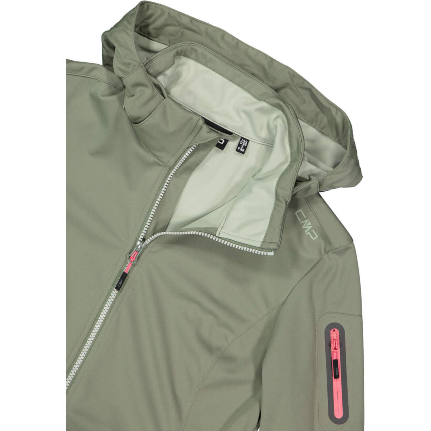 CMP Damen Softshelljacke Woman Jacket Zip Hood. Das Modell ohne Fleecewattierung des kultigen 3-lagigen Softshell von CMP! Eine an den Hüften eng anliegenden Jacke aus Light Softshell mit abnehmbarer Kapuze, die Sie in den Frühlingstagen dank des leichten Gewichtes von 180 g/m2 sowohl in den Bergen als auch in der Stadt begleiten wird. Dank der dreilagigen Struktur des Gewebes und der speziellen mikroporösen Thermobeschichtung Clima Protect ist dieses Modell winddicht, wasserfest und atmungsaktiv. Material: 100% Polyester.