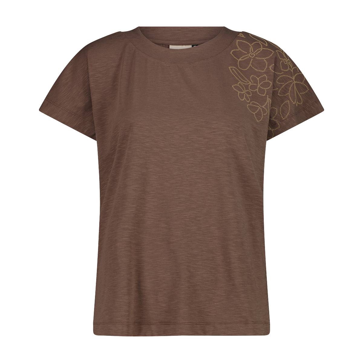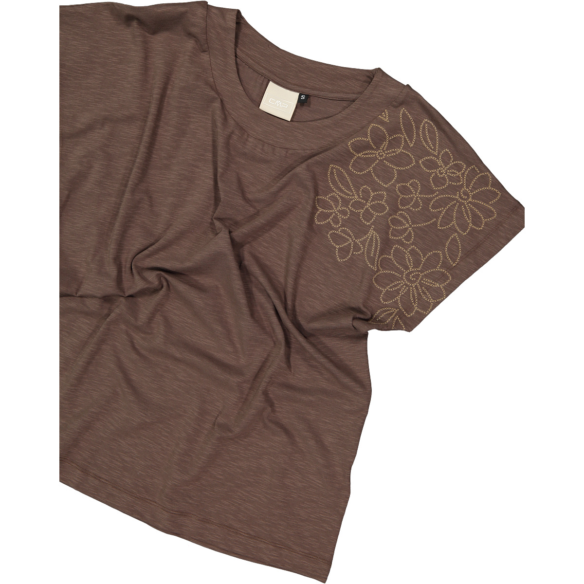 T-Shirt mit kurzen Ärmeln für Damen von CMP aus elastischem Baumwolljersey, leicht und bequem. Es ist mit einem Blumendruck auf der linken Seite der Brust gestaltet, für einen Hauch von dezentem und femininem Stil. Perfekt für die Freizeit oder alltägliche Aktivitäten mit Komfort und Bewegungsfreiheit. Gewicht: 120 g. Material: 95% Baumwolle, 5% Elasthan.