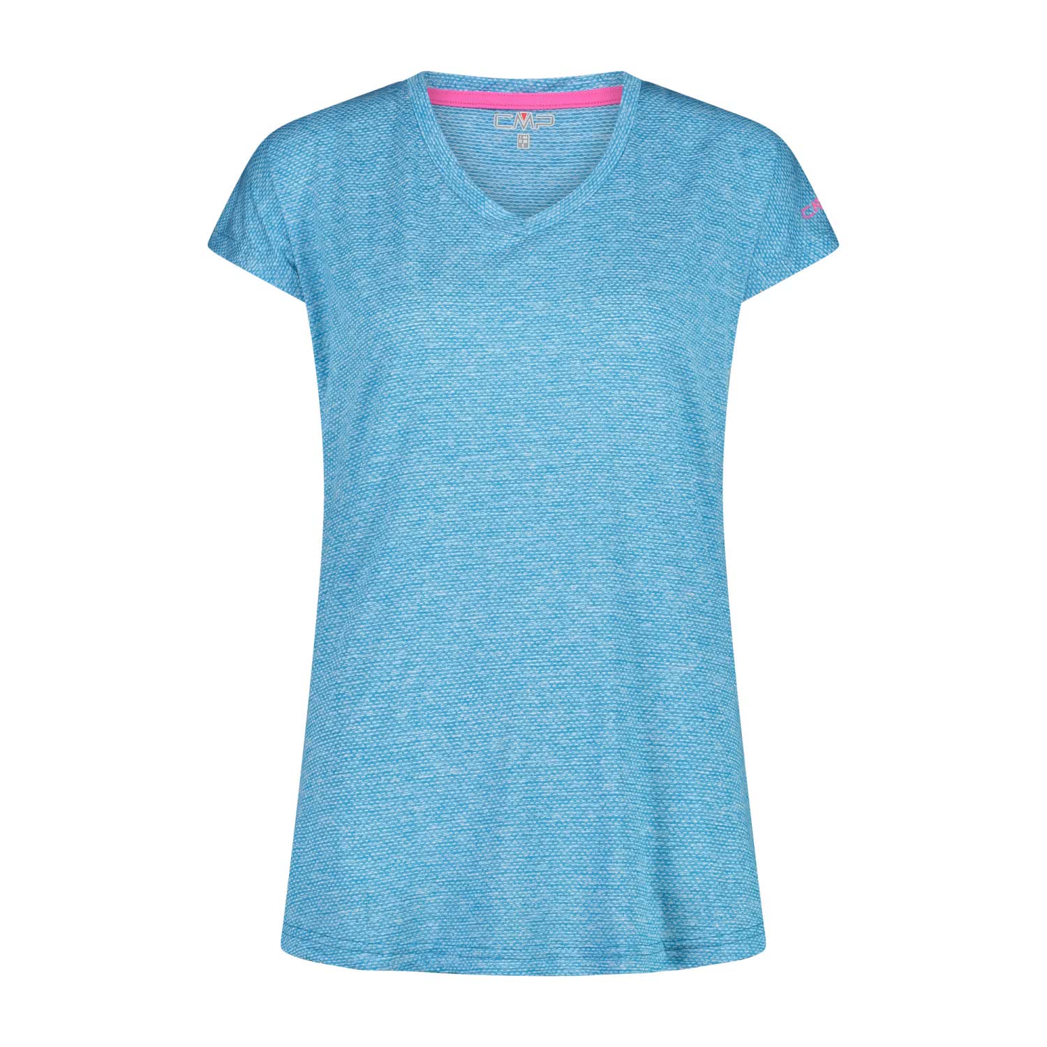 CMP Damen T-Shirt WOMAN T-SHIRT. Weit geschnittenes T-Shirt mit breitem Ausschnitt für alle sportlichen Aktivitäten im Sommer und für die Freizeit. Das melierte Gewebe ist leicht, atmungsaktiv und hemmt die Bildung von schlechten Gerüchen. Material: 100% Polyester.