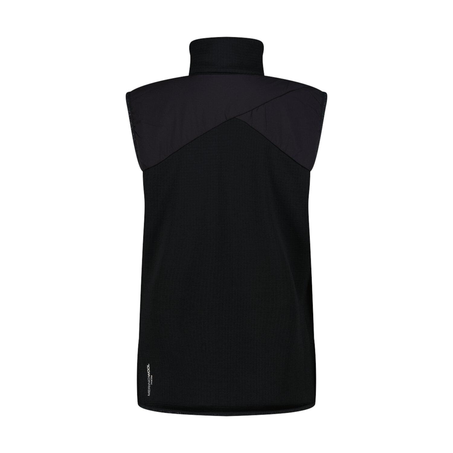 CMP Damen Weste KILDAR WOMAN VEST HYBRID. Diese CMP-Hybridweste für Damen kombiniert technische Leistung und Wärmekomfort in einem leichten und vielseitigen Kleidungsstück, ideal für den Outdoor-Bereich in der Übergangszeit oder als zusätzliche Schicht an kälteren Tagen. Das Kleidungsstück kombiniert die Merino-Padding-Polsterung von 140 g mit Merino- Performance-Stoffen, um natürliche Wärme, Atmungsaktivität und fortschrittliche Wärmeregulierung zu gewährleisten und die außergewöhnlichen Eigenschaften von Merinowolle zu nutzen. Grid-Tech-Fleece-Paneele tragen zu erhöhter Atmungsaktivität, Wärmeisolierung und Schweißverdunstung bei und halten den Körper auch bei körperlicher Aktivität trocken und sorgen für Behaglichkeit. Der Stoff ist zudem komprimierbar und leicht, perfekt für den Rucksack. Ausgestattet mit einem durchgehenden Frontreißverschluss ist diese ärmellose Jacke für diejenigen gedacht, die Mobilität, Wärme und Funktionalität suchen, ohne auf einen technischen und essentiellen Stil zu verzichten. Futter: 100% Wolle. Obermaterial: 100% Polyamid.