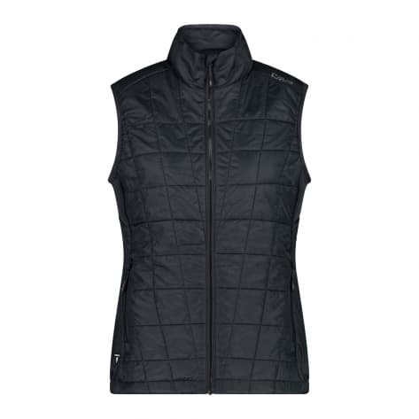 CMP Damen Weste Woman Vest. Eine ultraleichte, strapazierfähige und atmungsaktive zweite Schicht mit recycelter PrimaLoft® Black Insulation Hi-Loft Ultra-Wattierung. Die speziellen mechanisch ausgerichteten Falten, die die Polsterung charakterisieren, widerstehen Kompression und schaffen nützliche Räume zum Einschließen von Luft und zur Speicherung der Körperwärme, um auch bei kalten Temperaturen sicheren Komfort zu gewährleisten. Material: 100% Polyester.