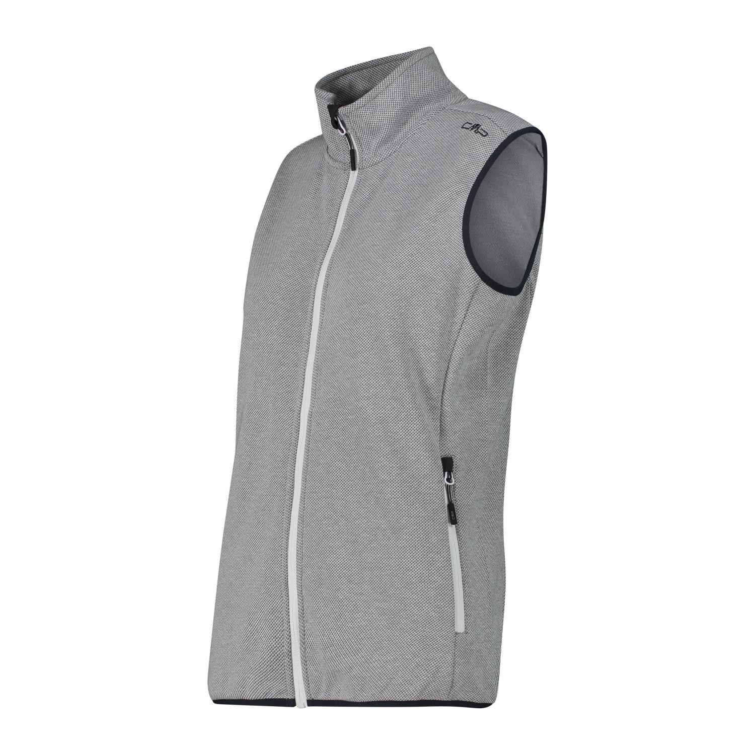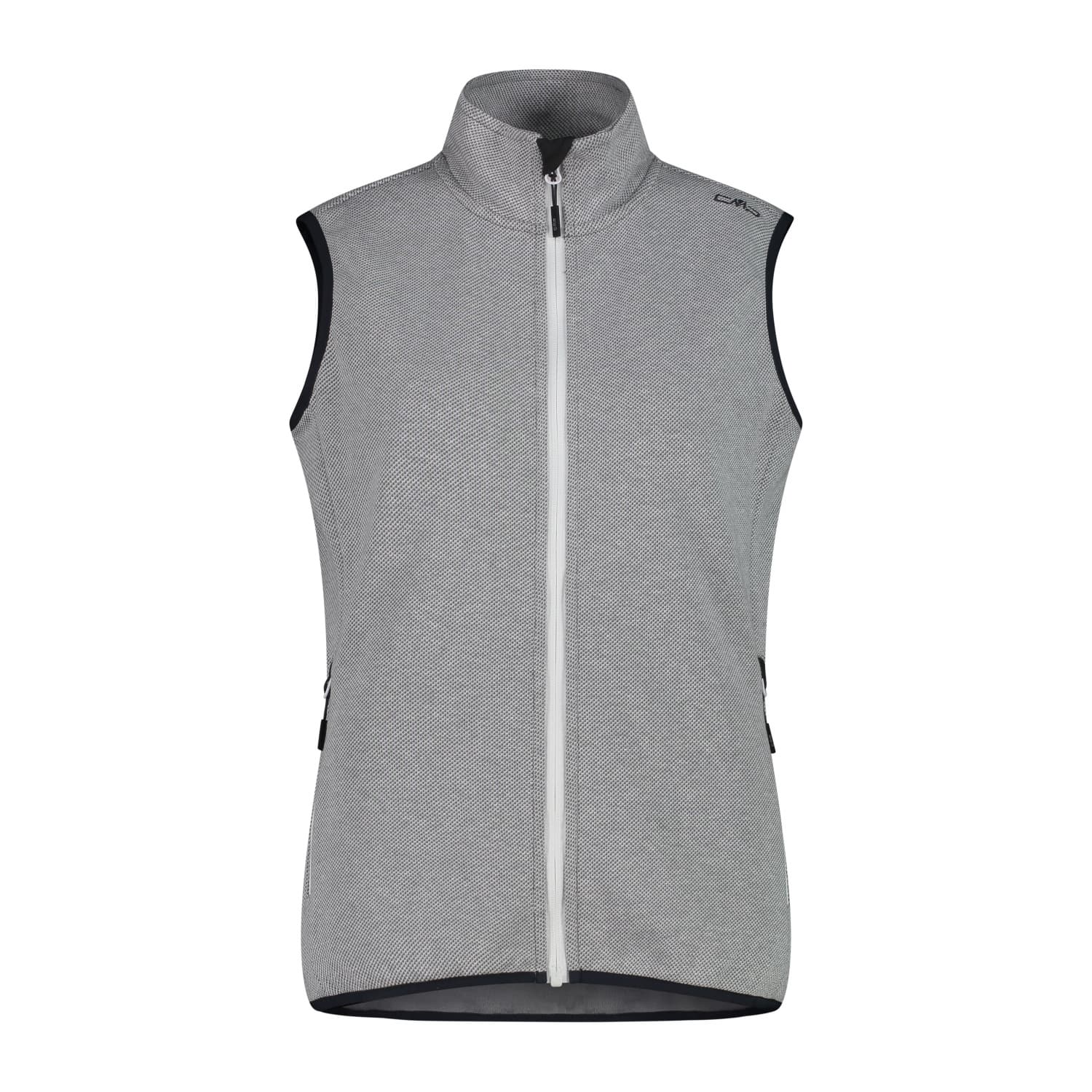 CMP Damen Weste WOMAN VEST 35H5376. Diese Weste aus Knit Tech bietet dank ihres Gewebes eine ideale Mischung aus Wärme und Komfort. Ideal als Außenschicht an wärmeren Tagen in der Übergangszeit oder als Zwischenschicht an kälteren Tagen, wurde sie entwickelt, um maximale Vielseitigkeit und Funktionalität zu gewährleisten. Ausgestattet mit Reißverschlusstaschen zur sicheren Aufbewahrung von Gegenständen, einem Frontreißverschluss mit Scheuerschutz für das Kinn sorgt diese Weste für eine optimale Passform und dauerhaften Komfort in jeder Situation. Ein funktionales und kuschliges Kleidungsstück, perfekt, um jedes Abenteuer stilvoll anzugehen. Material: 55% Polyester, 45% Baumwolle.