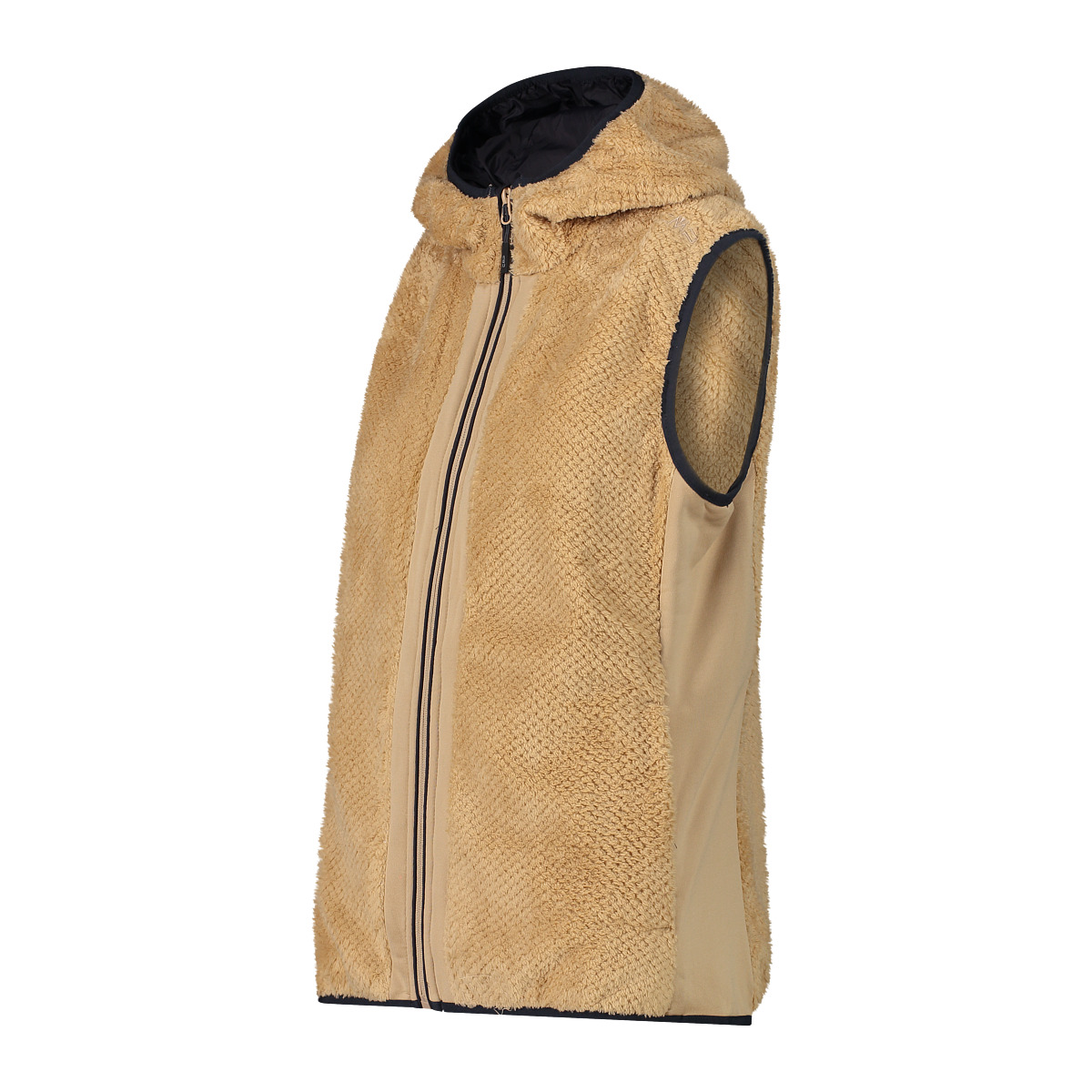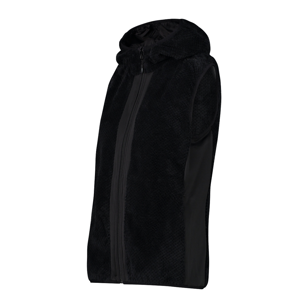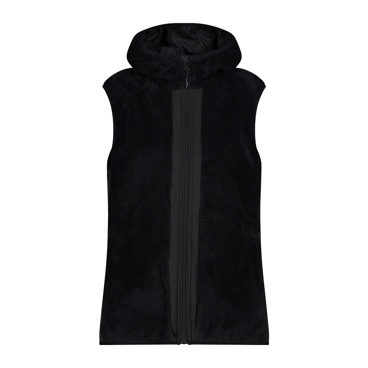 CMP Damen Weste Woman Vest Fix Hood. Dehnbare Weste aus Highloft-Stoff mit hochfloriger Konstruktion, die die Wärme auf der Innenseite speichert und sich angenehm weich anfühlt - eine warme und bequeme mittlere Isolierschicht für milde Tage. Frontreißverschluss mit winddichtem und scheuerfestem Einsatz, Seitentaschen mit Reißverschluss, elastischer Saum für eine bessere Passform. Technologie: Highloft; Stretch Performance. Gewicht: 385 g. Material: 100% Polyester.