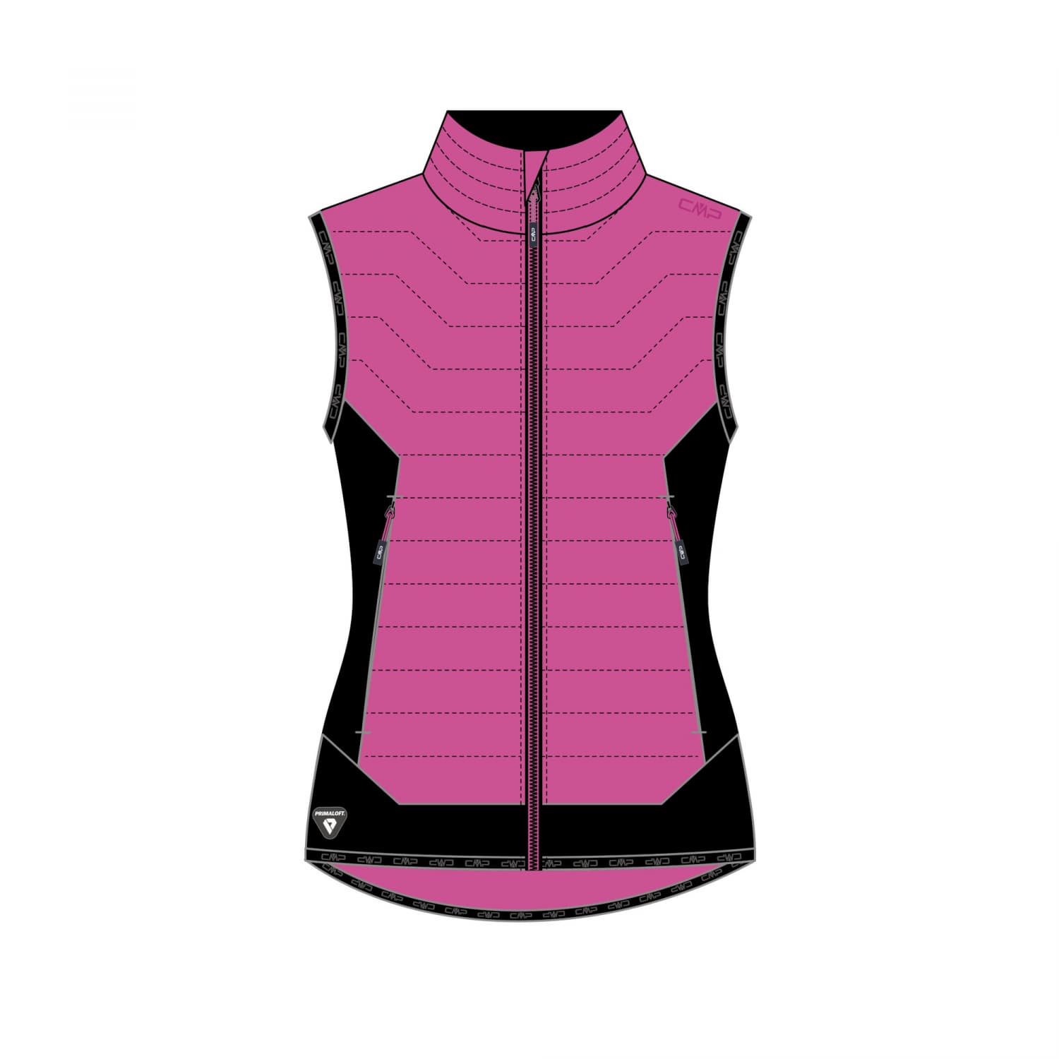 CMP Damen Weste Woman Vest Hybrid. Wattierte Weste aus der Unlimitech-Linie, ein perfektes Kleidungsstück als zweite Schicht bei hochintensiven Outdoor-Aktivitäten. Die Primaloft Black Thermoplume-Wattierung aus 100 % recyceltem Polyester reproduziert die leichte Wärme, Weichheit und Komprimierbarkeit von Gänsedaunen in Kombination mit der Nachhaltigkeit von recycelten Fasern. Die drei Außenstoffe, aus denen diese Jacke besteht, Ripstop, mattes Nylon und Stretch Performance, sind dank der Behandlung wasserabweisend. Das Kleidungsstück wird vervollständigt durch einen Frontreißverschluss mit Wind- und Scheuerschutzleiste, elastische Saum sowie zwei Seitentaschen mit Reißverschluss. Material: 100% Polyester.
