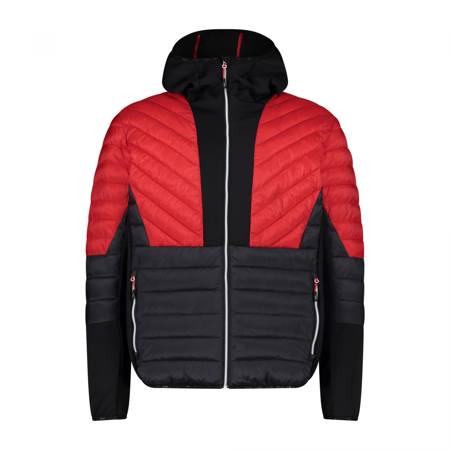 CMP Herren Winterjacke MAN HYBRID JACKET FIX HOOD. Ein Kleidungsstück, zahlreiche Abenteuer. Hybridjacke für den Einsatz bei Wintersportaktivitäten wie Trekking, Wandern, Schnellwandern und Bergsteigen. Je nach Intensität oder Außentemperatur kann die Jacke als mittlere Schicht oder als äußere Schicht verwendet werden. Das leichte Ripstop- und Nylongewebe (40 g/qm) wird mit einer Primaloft Recycled Black Thermoplume-Wattierung kombiniert, die zu 100 Prozent aus recyceltem Material besteht und auf der Vorder- und Rückseite sowie am Unterarm angebracht ist. Das Kleidungsstück schützt nicht nur vor Kälte, sondern dank der wasserabweisenden Behandlung auch vor Wasser und Wind. Die ergonomische Passform sorgt für einen hohen Tragekomfort, und Details wie die Innentasche mit Reißverschluss und die integrierte Kapuze am Kragen machen sie zu einem Allrounder für die ganze Saison. Der Color-Block-Effekt sowie der Mix aus diagonalen und horizontalen Streifen machen die Jacke modern und passend für jede Gelegenheit. Material: 100% Polyamid.