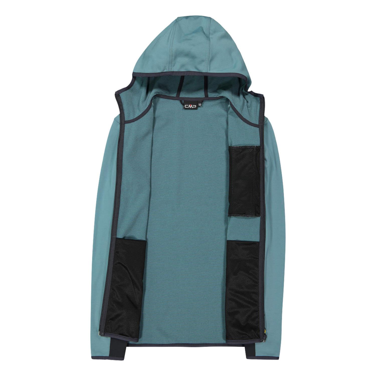 CMP Herren Fleecejacke MAN JACKET FIX HOOD. Unlimitech Fleece für Herren mit fest angebrachter Kapuze und durchgehendem Reißverschluss, hergestellt mit Grid-Tech-Technologie. Entworfen, um Atmungsaktivität, Komfort und maximale Bewegungsfreiheit zu gewährleisten, ist es sowohl als Außenschicht an milderen Tagen als auch als zweite Schicht bei kälteren Bedingungen ideal. Der elastische Stoff begleitet die Bewegungen während der körperlichen Aktivität und bietet eine ergonomische und dynamische Passform. Der Frontreißverschluss ist mit einem winddichten Einsatz und einem Kinnschutz für mehr Komfort während des Gebrauchs ausgestattet. Die fest angebrachte Kapuze, die zwei bequemen Seitentaschen mit Reißverschluss und die praktische Reißverschlusstasche auf Herzhöhe machen das Kleidungsstück noch funktionaler. Perfekt für Outdoor-Aktivitäten oder die Freizeit, kombiniert es technische Leistung und urbanen Stil in einem essentiellen Design. Material: 92% Polyester, 8% Elasthan.