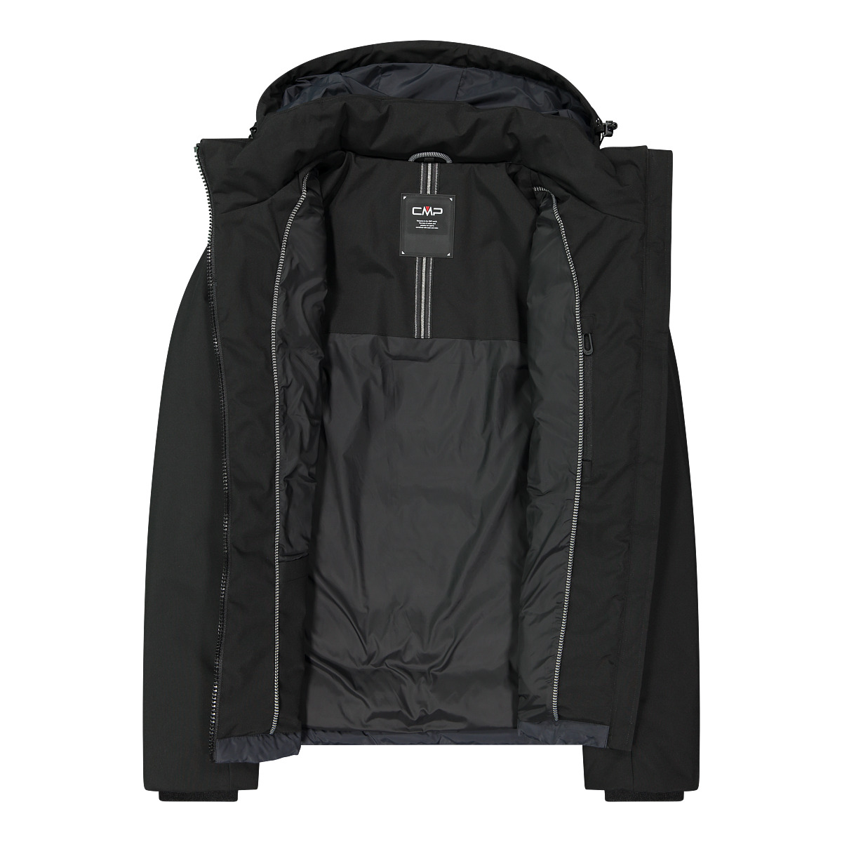 CMP Herren Jacke Man Jacke Zip Hood. Urban Jacke mit Feel Warm Flat und Flock gepolstert, synthetische Fasern, die den Körper auch bei kalten und nassen Bedingungen warm und geschützt halten. Die Clima Protect Membran macht das Kleidungsstück wasserdicht und bewahrt gleichzeitig hohe Atmungsaktivität, während die äußere Behandlung den Stoff wasserabweisend macht. Zu den Merkmalen gehören eine abnehmbare Kapuze, zwei Seitentaschen, ein verstellbarer Saum und ein Frontreißverschluss mit winddichter Klappe. Ein Kleidungsstück mit urbanem Stil, geeignet für Aktivitäten im Freien in der Stadt. Technologie: Feel Warm Flat gr.140; Feel Warm Flock; Water Repellent. Gewicht: 950 gr. Länge: 73 cm. Material: 100% Polyamid.