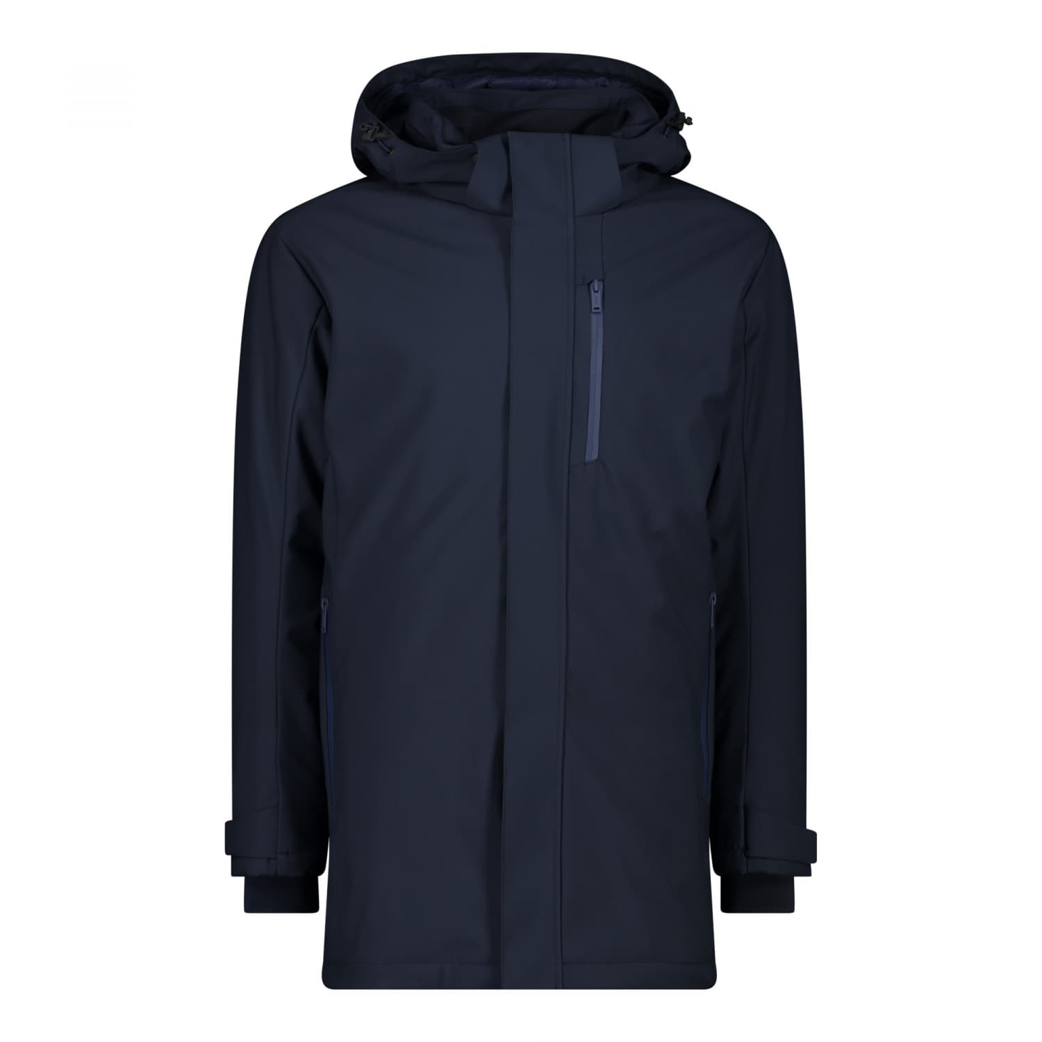 CMP Herren Parka Man Parka Snaps Hood. Leichter Softshell-Parka mit Feel Warm Flat-Innenwattierung. Die Clima Protect-Membran macht den Parka wasserdicht und atmungsaktiv. Mit abnehmbarer Kapuze und Frontreißverschluss mit Windschutzleiste. Material: 90% Polyester, 10% Elasthan.