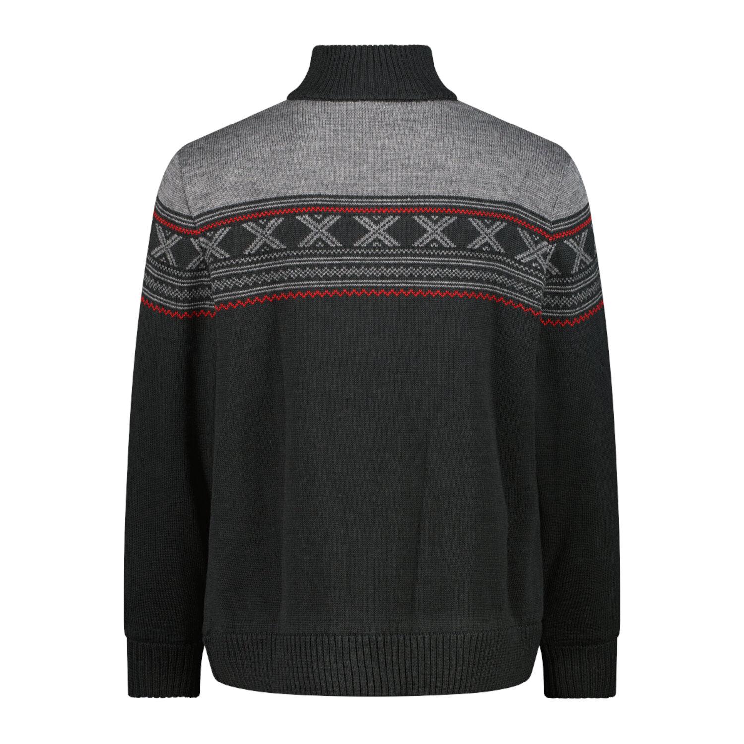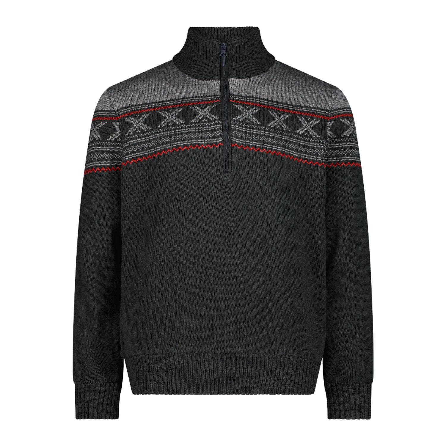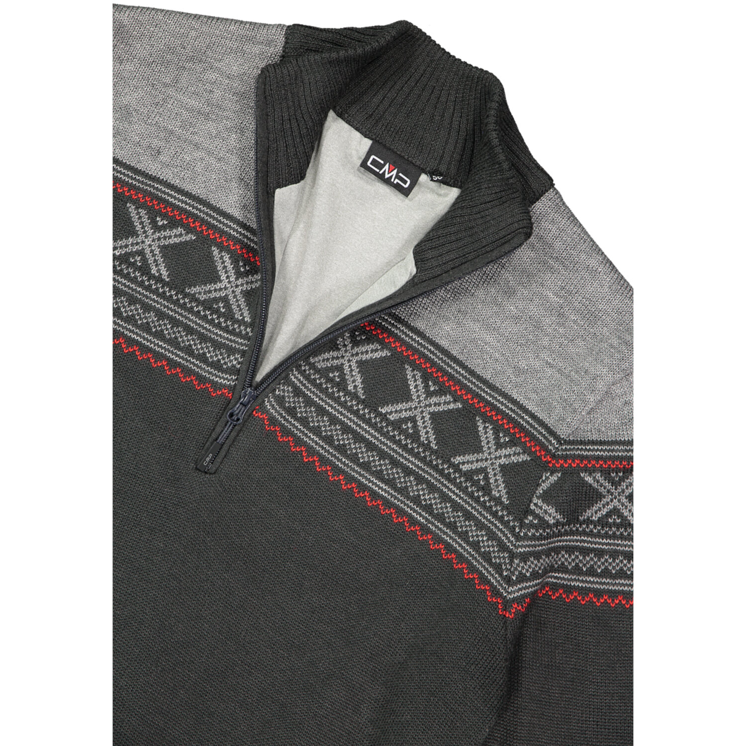CMP Herren Pullover Man Sweat Knitted WP. Dieser Herren-Pullover aus Strickstoff wurde entwickelt, um Komfort, Funktionalität und Stil zu vereinen. Er hat eine Regular-Fit-Passform, die maximale Bewegungsfreiheit und einen modernen Look bietet. Das Motiv auf der Brust verleiht einen Hauch von dezenter Eleganz, ideal für alle, die gern auf jedes Detail achten. Der praktische halblange Frontreißverschluss ermöglicht eine bedarfsgerechte Anpassung der Öffnung, während der Ärmelsaum und der untere Saum auf eine bequeme Passform ausgelegt sind. Dank der winddichten Struktur schützt er effektiv vor Wind und bietet Wärme und Komfort auch an kühleren Tagen. Perfekt für Outdoor-Aktivitäten oder um ein modernes Casual-Outfit zu vervollständigen. Material: 50% Wolle, 50% Polyacryl.