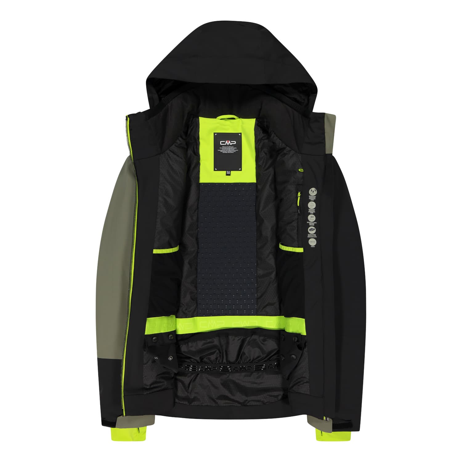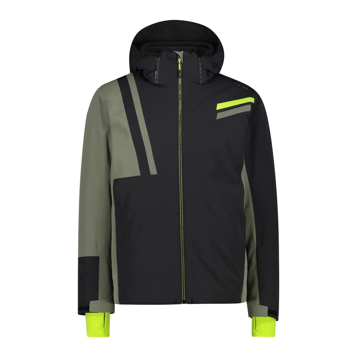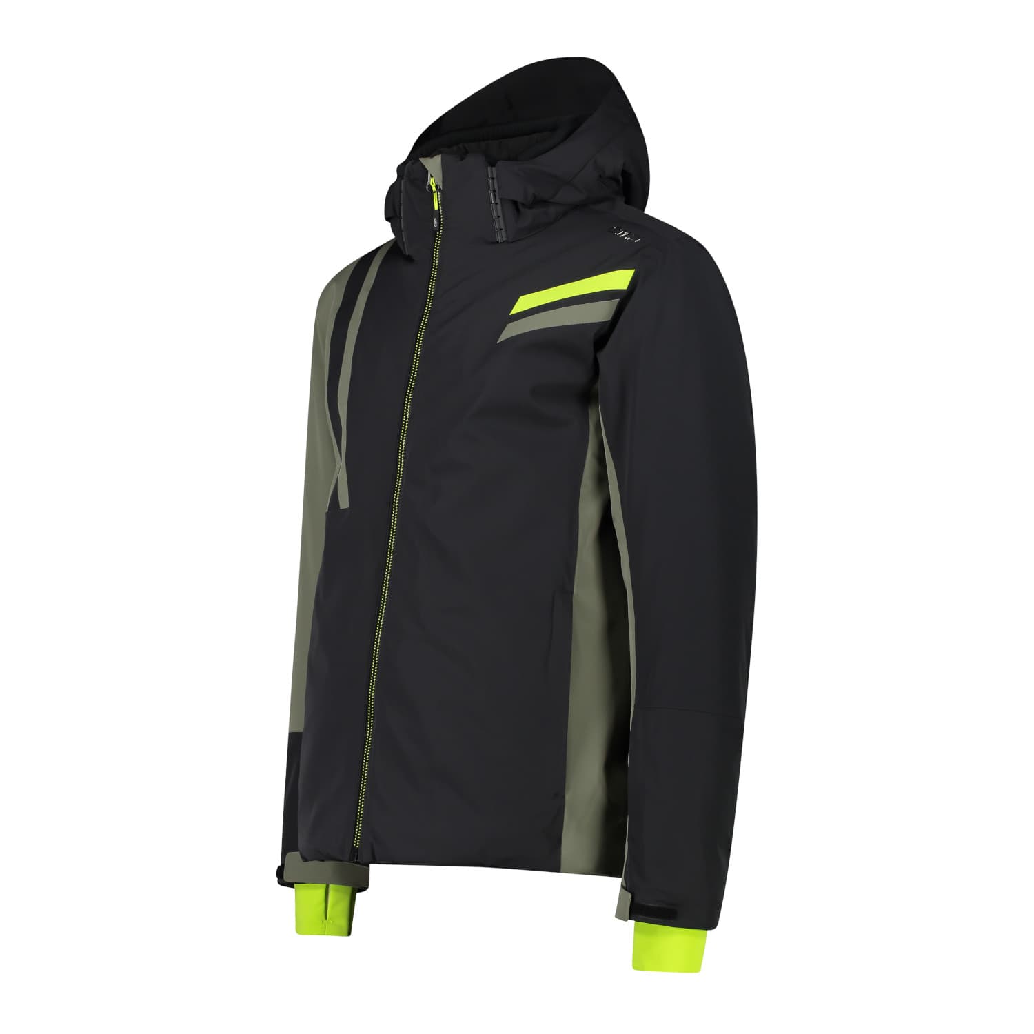 CMP Herren Skijacke MAN JACKET ZIP HOOD. Skijacke aus 4 Way Stretch Gewebe mit Feel Warm Flat Synthetikwattierung, die platzsparend und extrem leistungsstark ist. Der mit gebürstetem Trikot gefütterte Innenkragen sorgt für ein warmes Gefühl. Die komplett versiegelten Nähte, das Clima Protect Thermolaminat und die wasserabweisende Behandlung (PFC-frei) machen die Jacke bei jedem Wetter wasserdicht und atmungsaktiv (WP 20.000 MVP 10.000), alle Reißverschlüsse sind wasserdicht und der vordere hat eine winddichte und scheuerfeste Innenlasche. Das Kleidungsstück hat eine abnehmbare Kapuze mit Reißverschluss, einen verstellbaren Kordelzug am Saum und Manschetten mit Daumenlöchern. Zwei Netz-Innentaschen, eine Brusttasche mit Reißverschluss und Schneegamasche innen. Material: 88% Polyamid, 12% Elasthan.