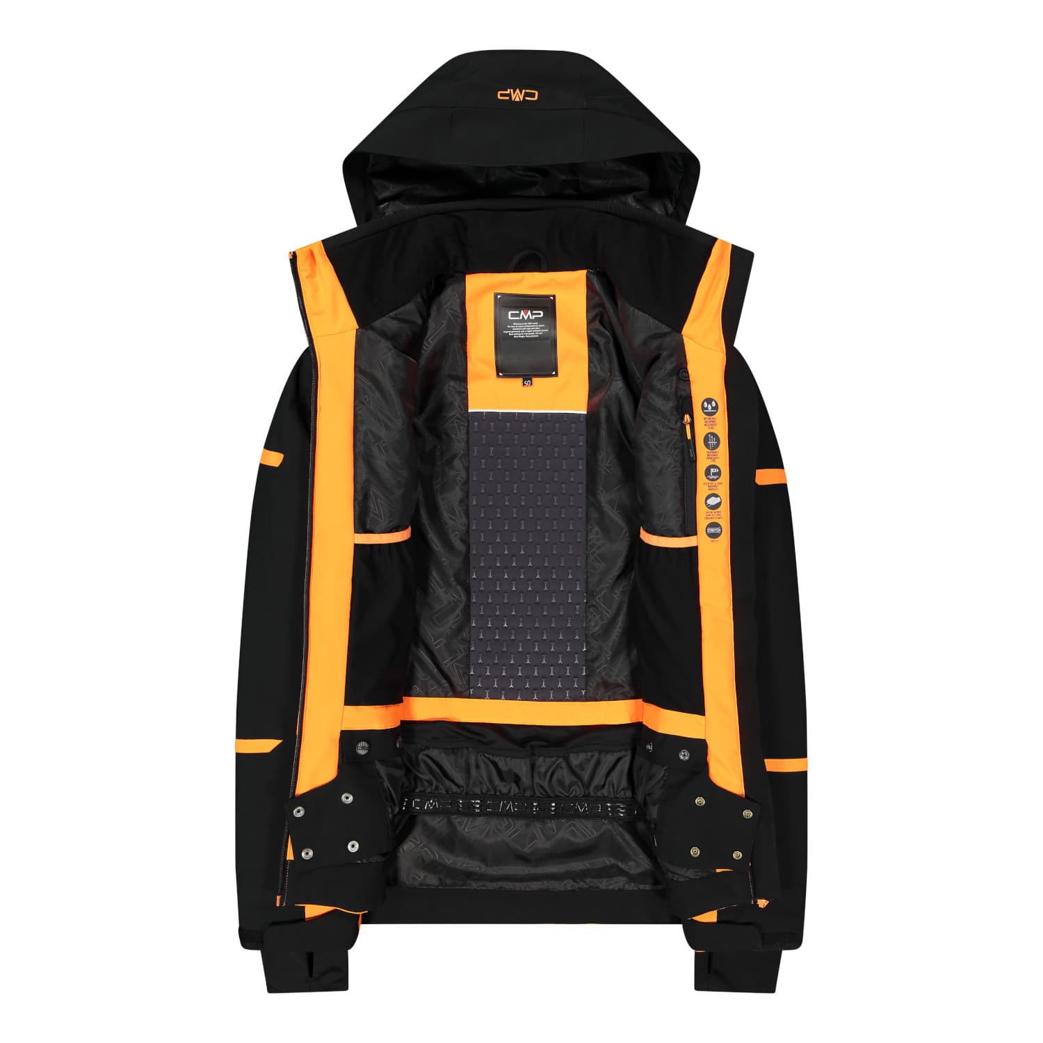 CMP Herren Skijacke MAN JACKET ZIP HOOD. Skijacke aus 4 Way Stretch Material mit sportlichem Design, die dank der warmen und platzsparenden Feel Warm Flat-Wattierung, den vollständig verschweißten Nähten, dem wasserabweisenden Gewebe und dem zwischen den Geweben platzierten Thermolaminat, einer echten Barriere gegen das Wetter, hohe Leistung garantiert. Die abnehmbare Kapuze, die Front- und Innentaschen, die verstellbaren Lycra-Bündchen, der Frontreißverschluss mit Wind- und Scheuerschutzleiste und der Kordelzug in der Taille für eine bessere Passform vervollständigen das Kleidungsstück. Material: 90% Polyester, 10% Elasthan.
