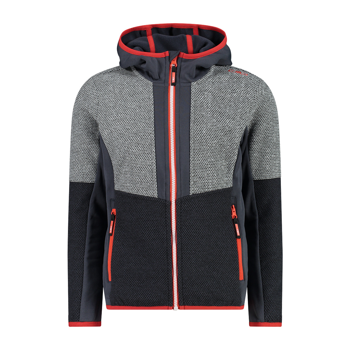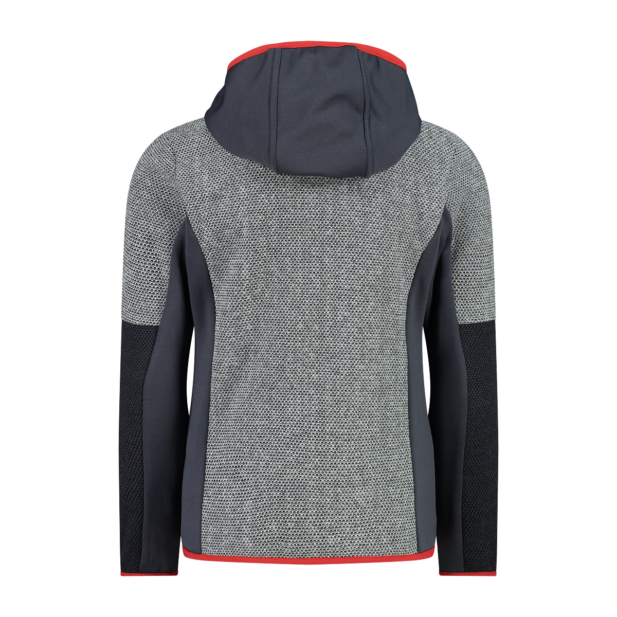 CMP Mädchen Knit Tech Fleece-Kapuzenjacke mit wabenförmiger Jacquard-Verarbeitung. Ein Kleidungsstück, das Wärme, Komfort und Schutz bietet. Das Modell verfügt über einen Frontreißverschluss mit winddichter und scheuernder Patte, zwei Seitentaschen mit Reißverschluss, elastischen Saum, Bündchen und Kapuze. Technologie: Knit Tech. Gewicht: 300 g. Material: 100% Polyester.