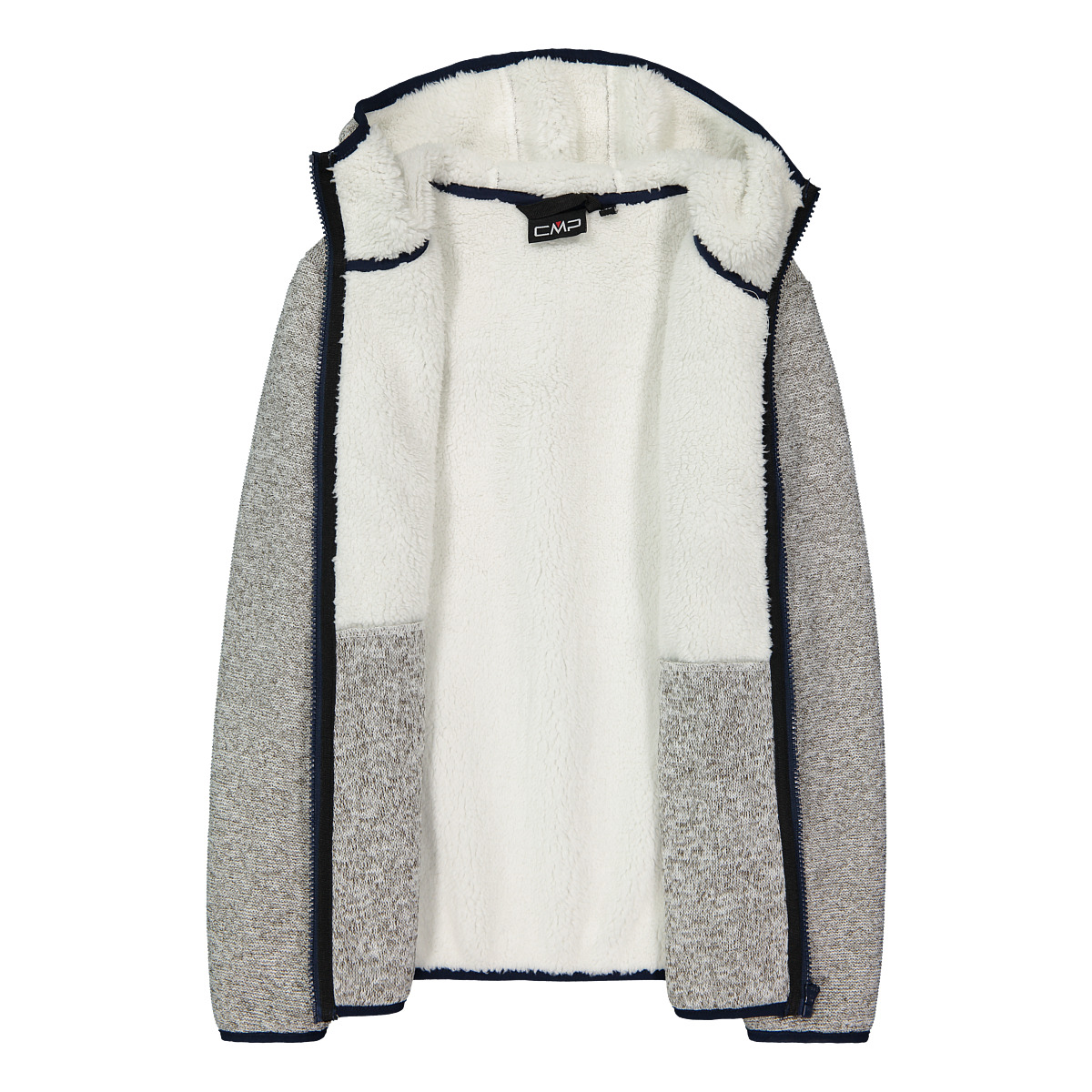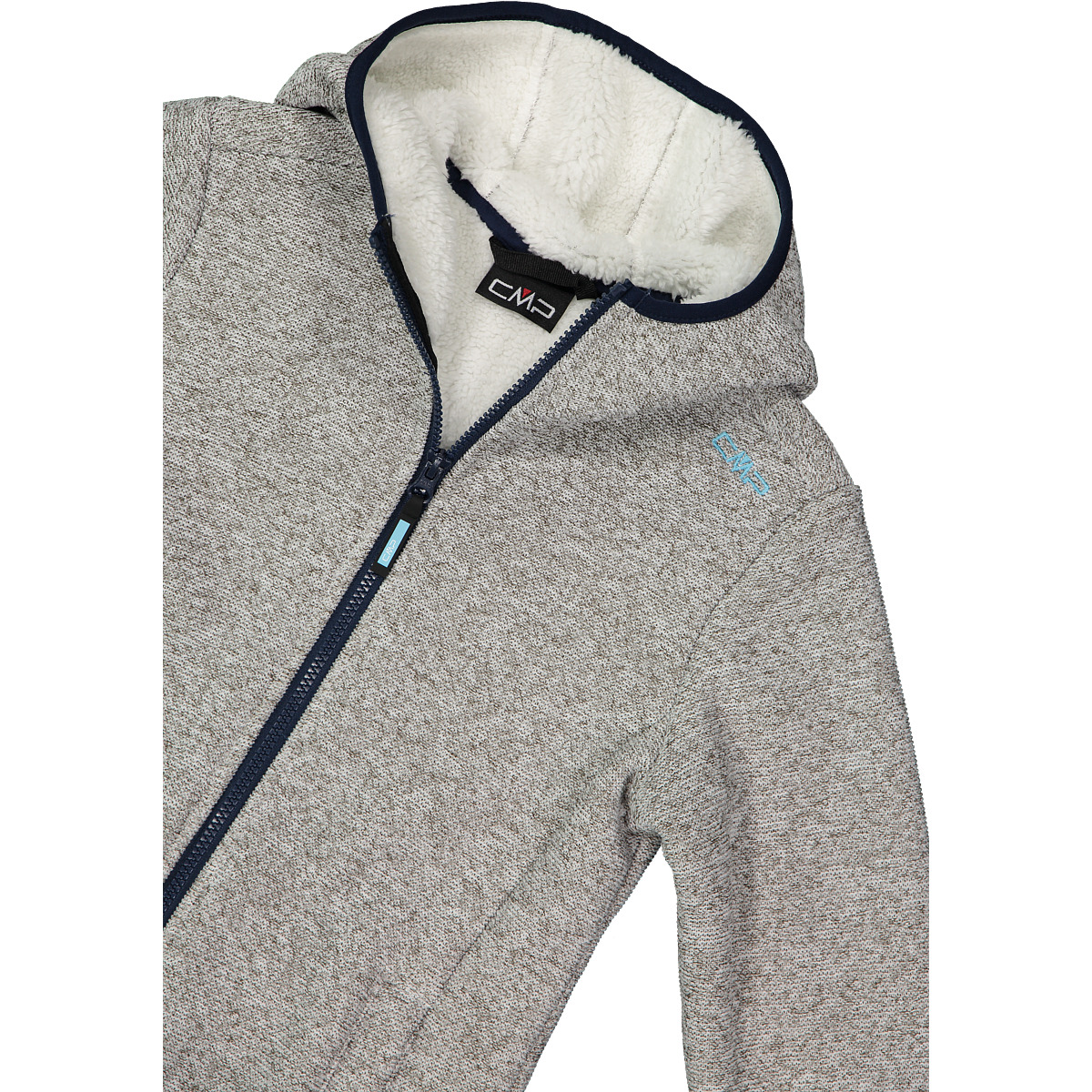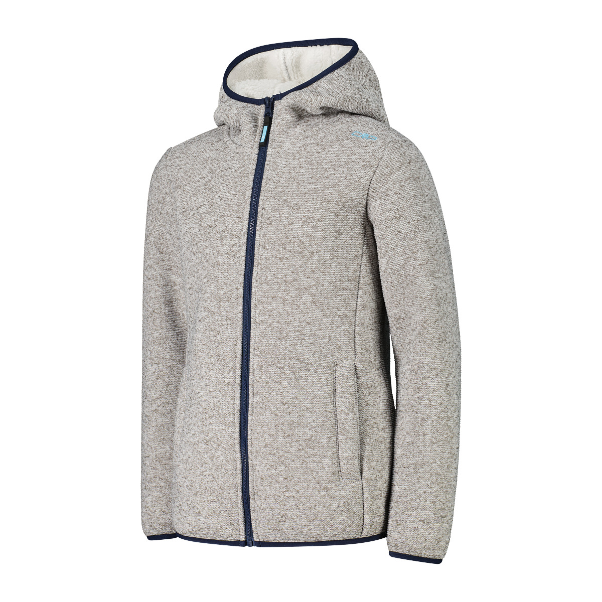 CMP Mädchen Fleecejacke KID G JACKET FIX HOOD. Die Fleecejacke in Knit Tech Melange mit Kapuze für Mädchen von CMP ist das ideale Kleidungsstück, um Komfort und Wärme an kühleren Tagen zu kombinieren. Sie besteht aus einem weichen und strapazierfähigen Stoff und ist mit einem flauschigen Teddyfell-Besatz angereichert, der ein angenehmes Gefühl von Wärme und Schutz bietet. Die Passform wurde entwickelt, um Bewegungsfreiheit beim Spielen und bei Outdoor-Aktivitäten zu gewährleisten, während die praktische Kapuze zusätzlichen Schutz vor Wind und Kälte bietet. Abgerundet wird das Kleidungsstück durch zwei Seitentaschen, um die Hände warm zu halten oder Kleinigkeiten darin zu verstauen. Ein vielseitiges und kuscheliges Kleidungsstück, das Ihr kleines Mädchen bei jeder Gelegenheit stilvoll und bequem begleitet. Technologie: Knit Tech. Gewicht: 520 g. Länge: 58 cm. Material: Aussenseite 100% Polyester, Innenseite 100% Polyester.