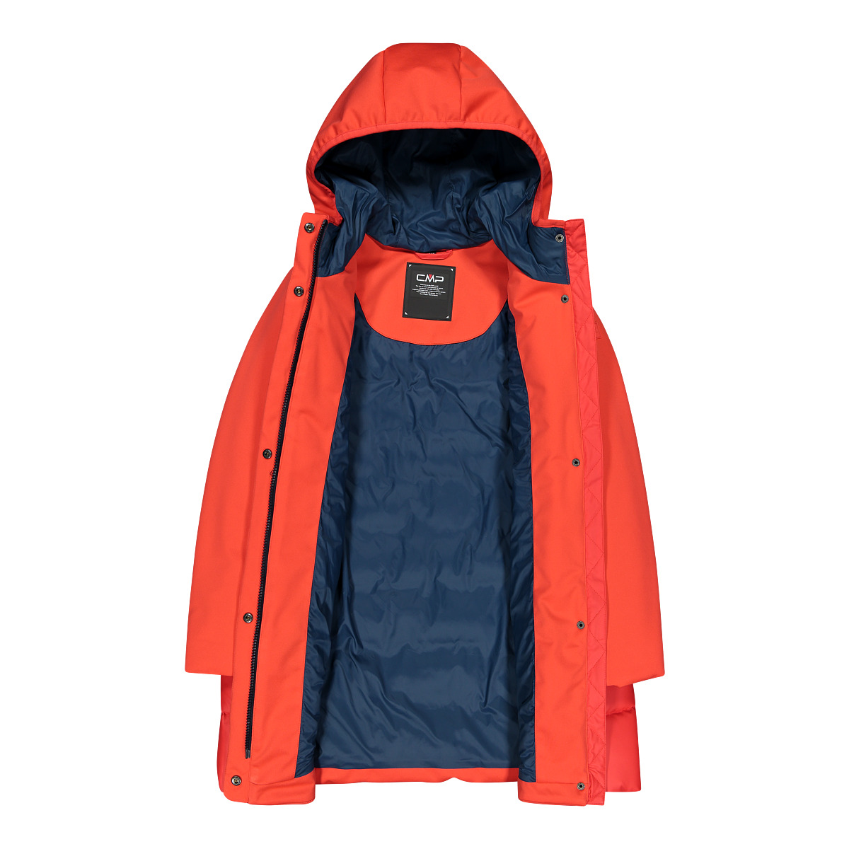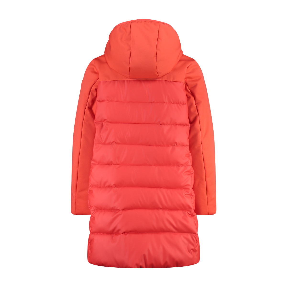 CMP Mädchen langer wattierter Mantel aus Feel Warm Flat und Feel Warm Flock Synthetikfasern, auch bei Nässe leistungsstark, platzsparend und atmungsaktiv. Es ist sehr glamourös und zeichnet sich durch seinen lockeren Sitz am unteren Ende aus. Die Kompaktheit des Kleidungsstücks garantiert maximale Bewegungsfreiheit. Auf der Außenseite ist sie wasserabweisend (PFC-frei). Zwei großè Seitentaschen, ein winddichter und scheuerfester Einsatz unter dem Frontreißverschluss und eine Fix Hood für kältere Tage runden das Kleidungsstück ab. Technologie: Feel Warm Flat gr.120; Feel Warm Flock; Water Repellent. Gewicht: 700 g. Länge: 73 cm. Material: 100% Polyester. Futter: 100% Polyamid. Wattierung: 100% Polyester.