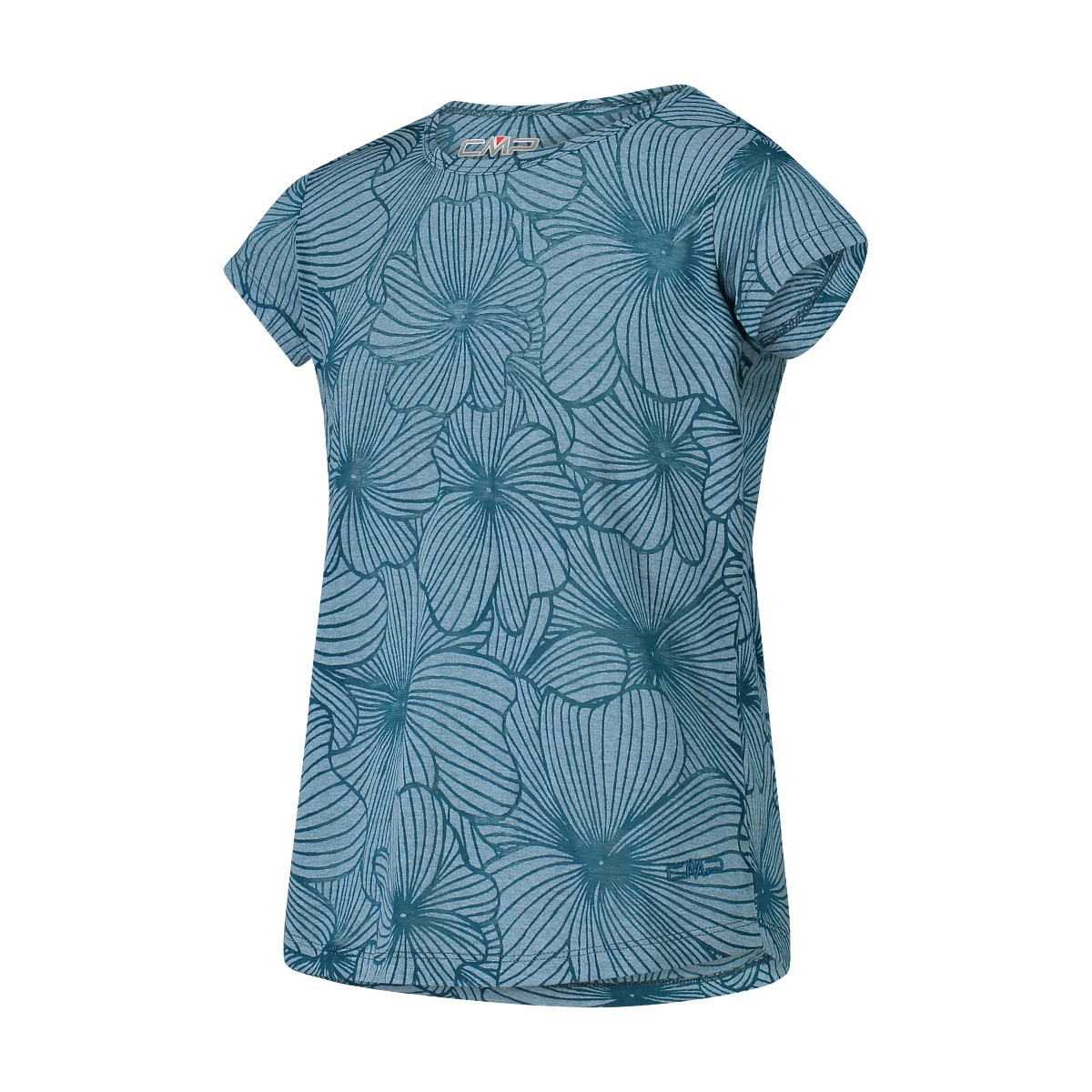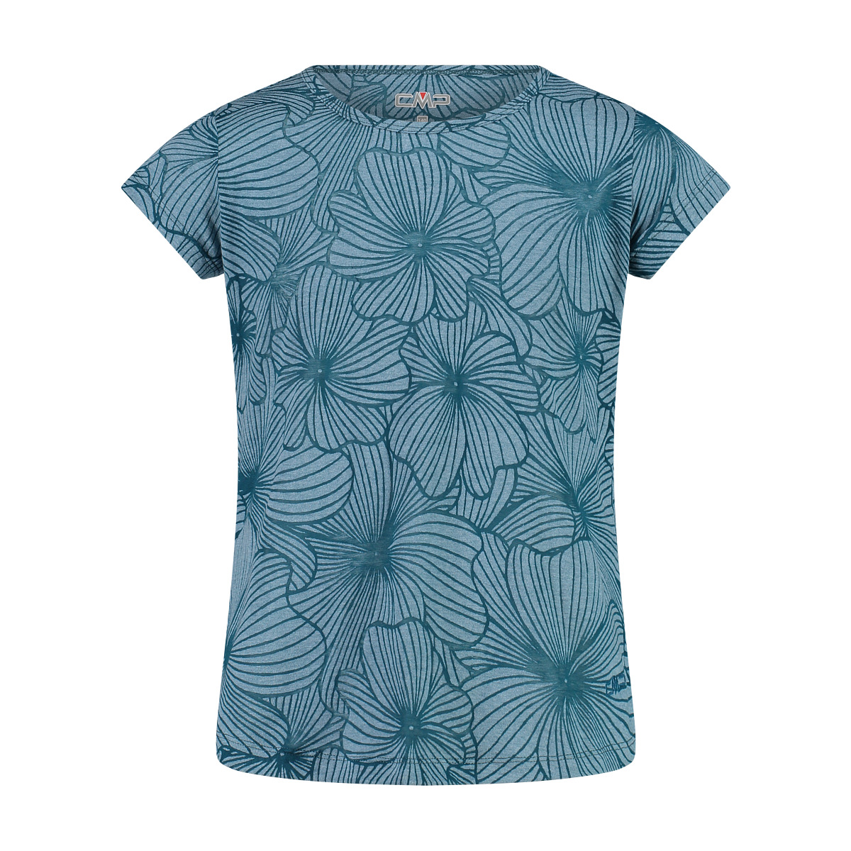 CMP Mädchen T-Shirt aus Baumwollmischung. Das florale Allover-Muster wird mit der Burn Out-Technik hergestellt, bei der das Design in den Stoff eingraviert wird. Ein Kleidungsstück, das für alle Outdoor-Aktivitäten in der Natur und in der Stadt geeignet ist. Gewicht: 65 g. Material: 60% Baumwolle, 40% Polyester.