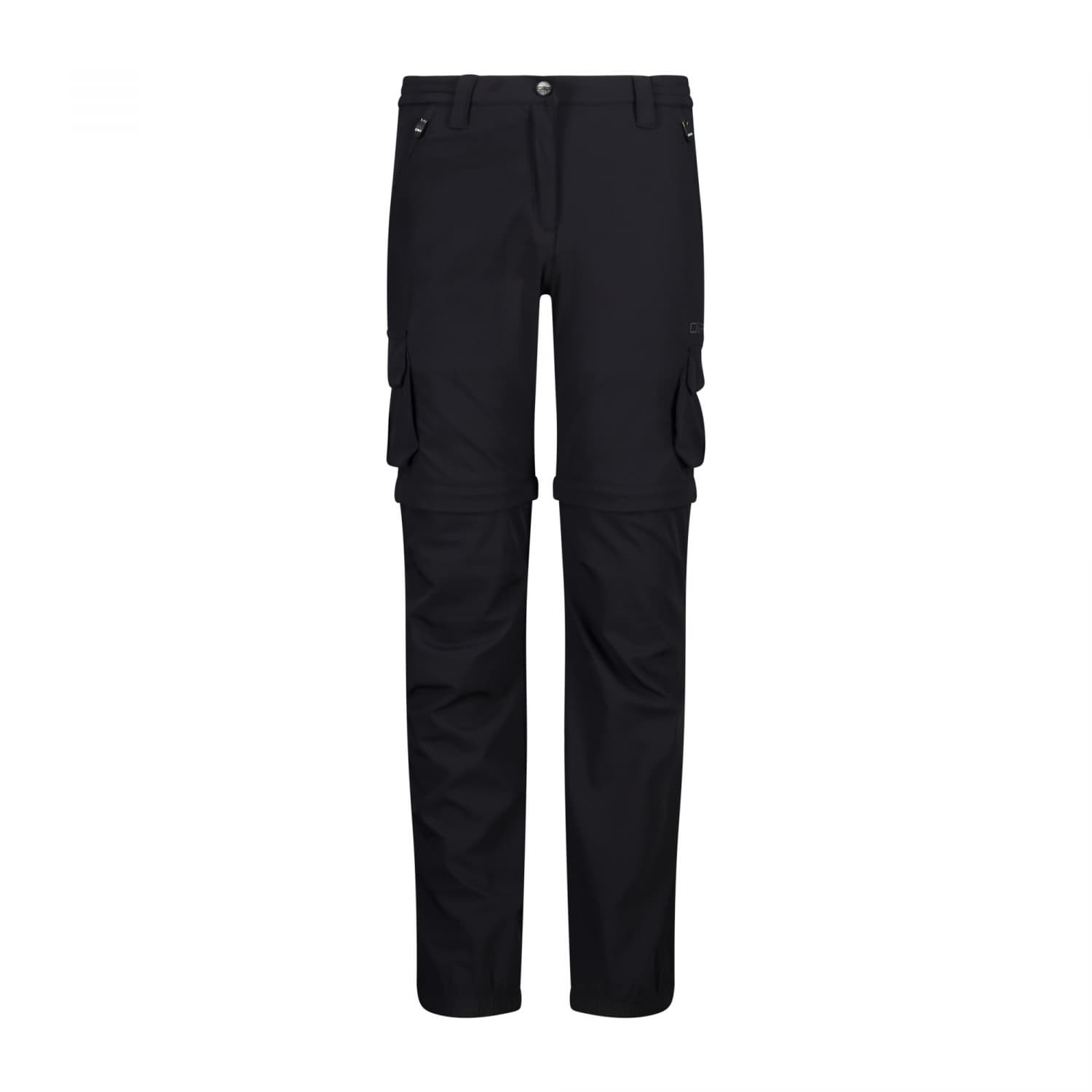 CMP Mädchen Trekking-Hose mit großen Seitentaschen. Trekking-Hose für Mädchen mit Zip-Off oberhalb des Knies, kann leicht in eine Bermuda umgewandelt werden. Ideal für sommerliche Wandertouren, in denen das Wetter manchmal schnell umschlägt. Die Dry-Function-Technologie erleichtert das Verdampfen der Feuchtigkeit und die normale Wärmeregulierung des Körpers in Kombination mit dem Stretchmaterial, das auch vor Sonnenlicht schützen kann, Ihnen Komfort und Wohlbefinden auch bei intensivsten Ausflügen garantiert. Die zahlreichen Taschen, wie die Seitentaschen mit Reißverschluss und die tiefen Taschen oberhalb des Knies, bieten genügend Platz für alle notwendigen persönlichen Dinge. Material: 90% Polyamid, 10% Elasthan.