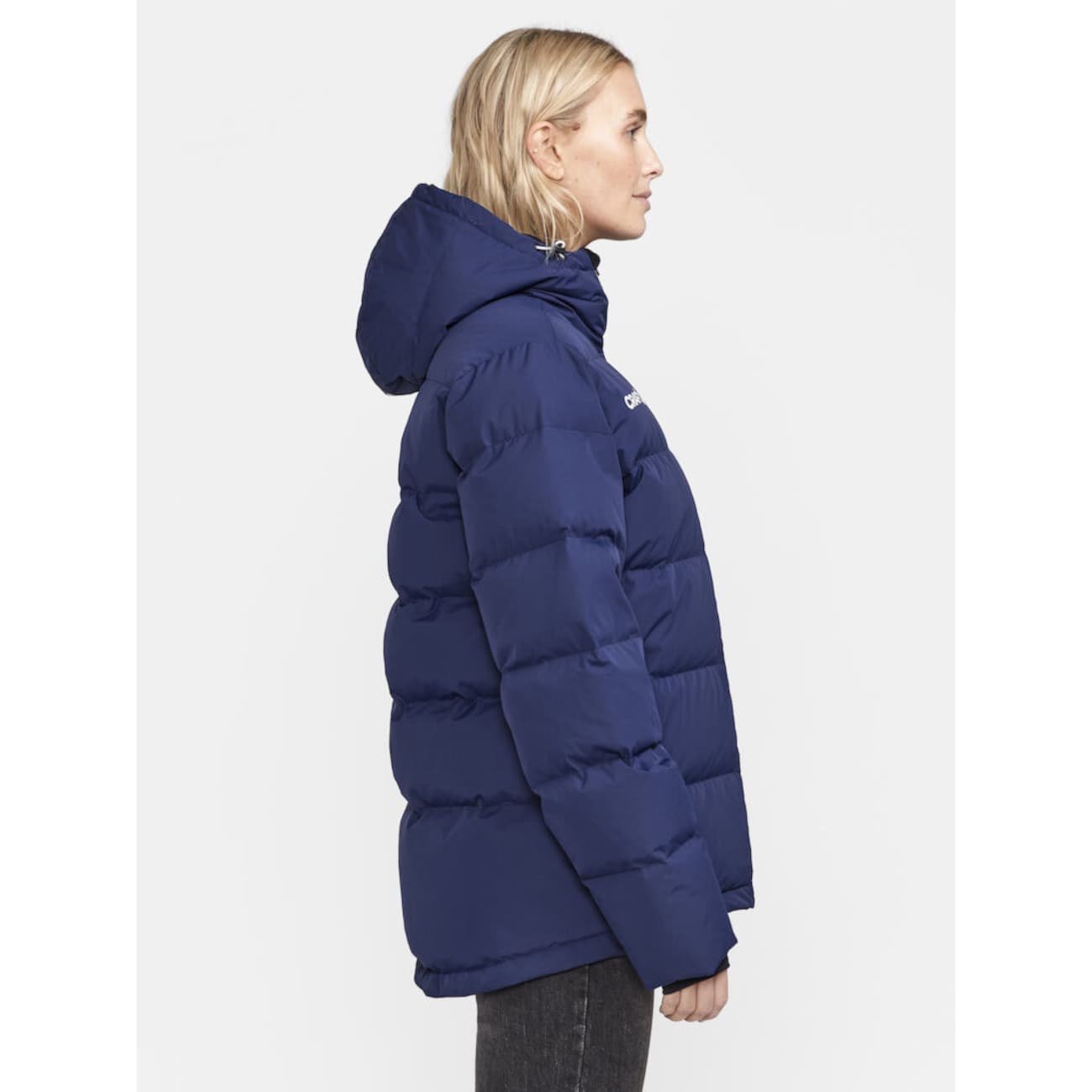 Craft Damen Jacke EVOLVE DOWN JACKET. Die Evolve Down Jacket ist eine warme Daunenjacke die dich selbst bei kältesten Temperaturen warm hält. Das matte Außenfinish eignet sich perfekt für das Branding mit deinem Vereins-, Firmen- oder Sponsorenlogo. Darüber hinaus verfügt die Jacke über eine Kapuze, Jersey-Bündchen mit Daumenöffnungen, eine große Innentasche aus Mesh und zwei seitliche Reißverschlusstaschen. Über den Kordelzug in Bund und Kapuze kann die Jacke optimal angepaßt werden. Zusammensetzung der Füllung: 60% Daunen, 40% Federn. Material: 100% Polyester.