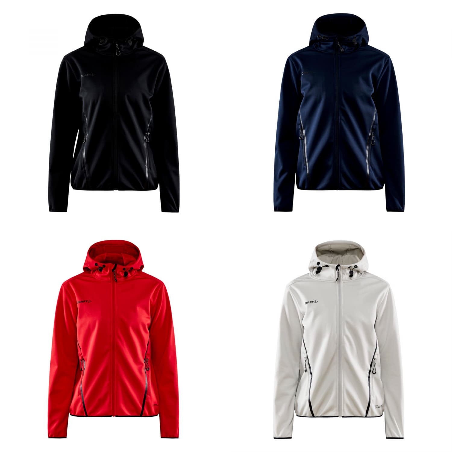 Craft Damen Softshelljacke ADV Explore Soft Shell Jacket. Innovative Softshelljacke aus recyceltem, winddichtem und wasserabweisendem Material mit weicher, gebürsteter Innenseite und hoher Elastizität. Mit zwei Seitentaschen mit Reißverschluss, Innentasche mit Reißverschluss, verstellbarer Kapuze und Gummizug am Saum und an den Ärmelenden. WP 8000 / MVP 3000. Material: 100% Polyester.