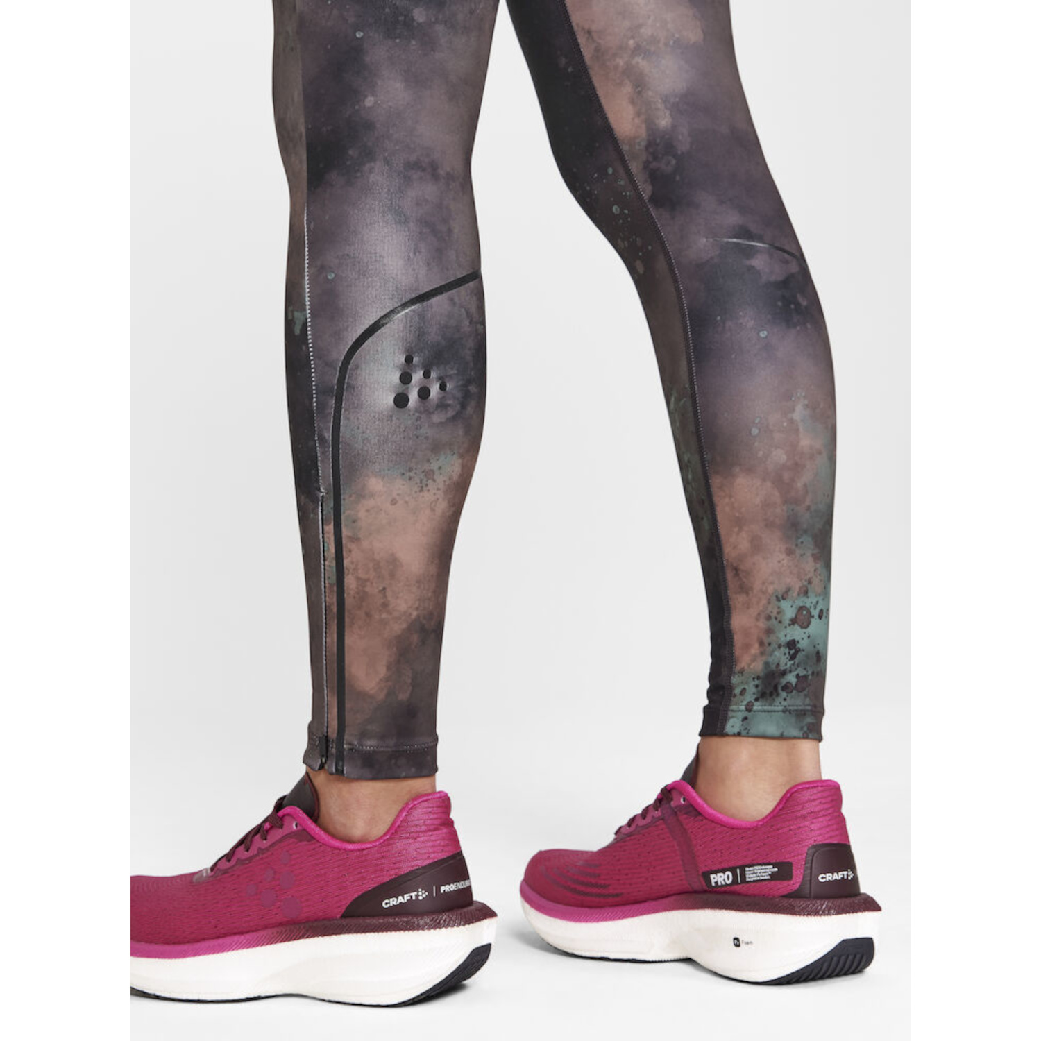Craft Damen Tight ADV ESSENCE RUN TIGHTS W. Innovative, angenehme Running Tights mit breitem Bund für hohen Komfort bei intensiven Aktivitäten. Weiches Material aus recyceltem Polyester und Elasthan-Jersey mit optimaler Elastizität. Material: 77% Polyester, 23% Elasthan.
