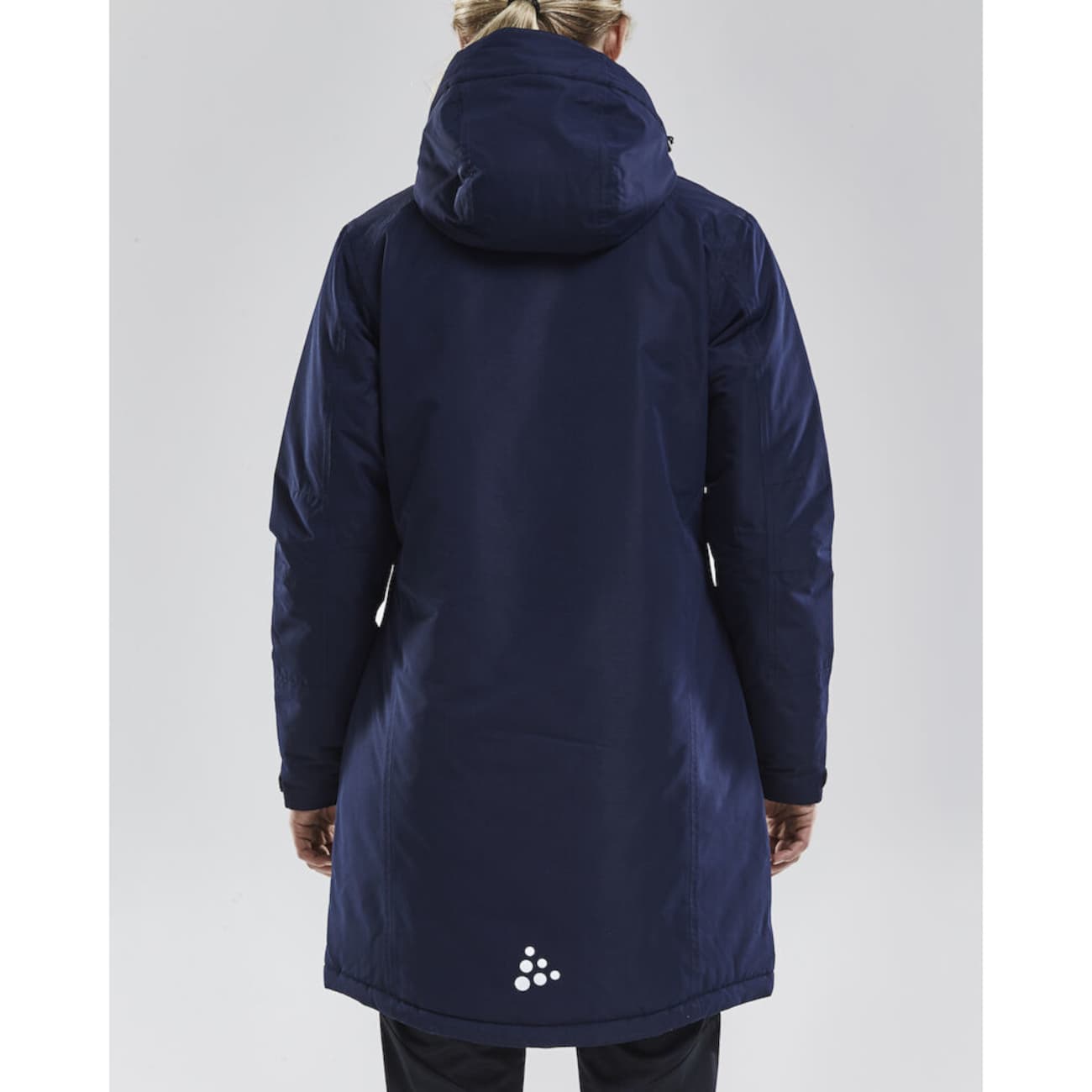 Craft Damen Winterjacke Jacket Parkas. Wattierte, lange Jacke mit strapazierfähigem Außenmaterial, die sich ideal zum Aufwärmen bei Kälte oder als warme Jacke für Mitarbeiter, Helfer und Spieler auf der Bank eignet. WP 3000 / MVP 3000. 2-Wege-Reißverschluss. Abnehmbare Kapuze. 6 Taschen. Ärmelabschlüsse anpassbar. Kapuze über Kordelzug verstellbar. Material: 100% Polyester.