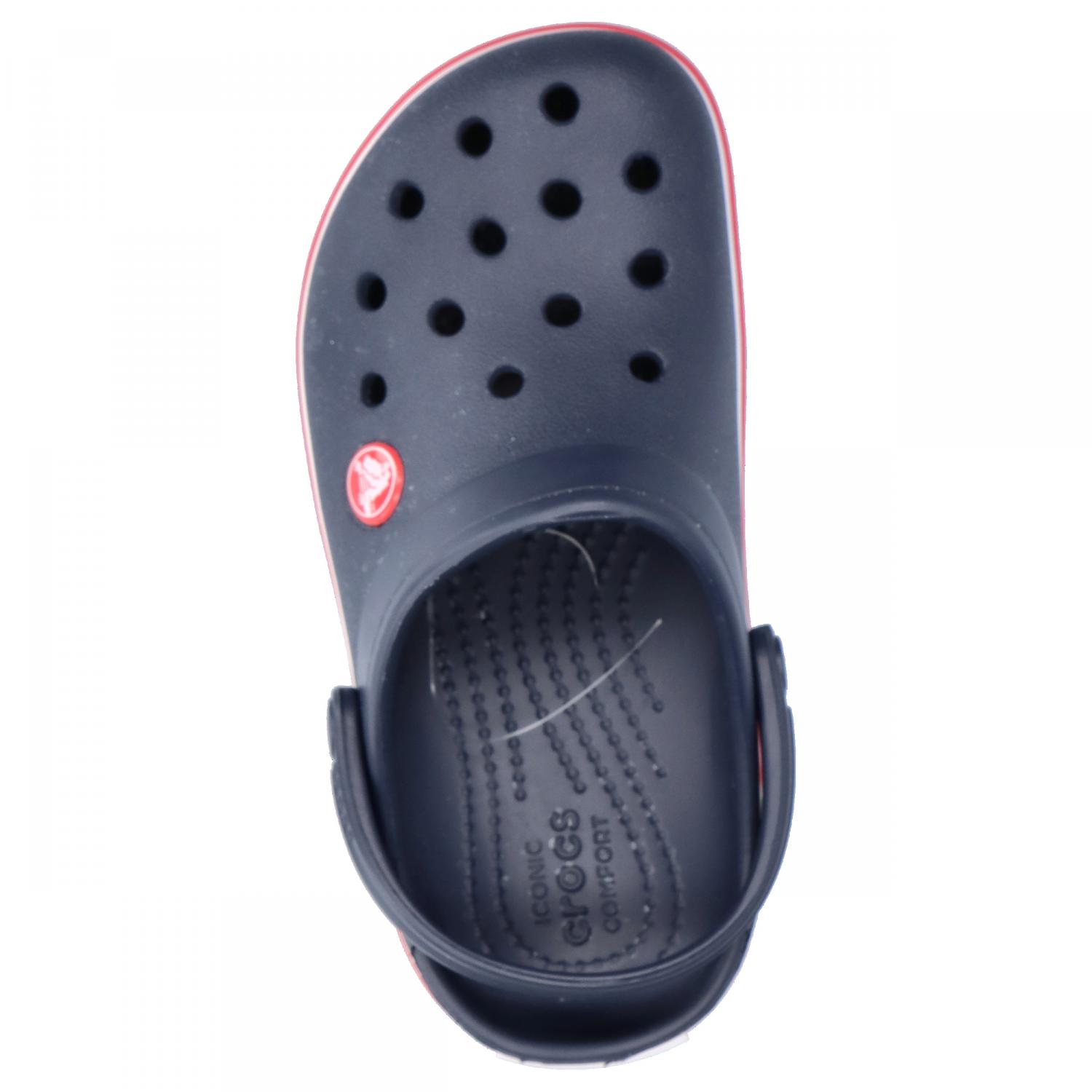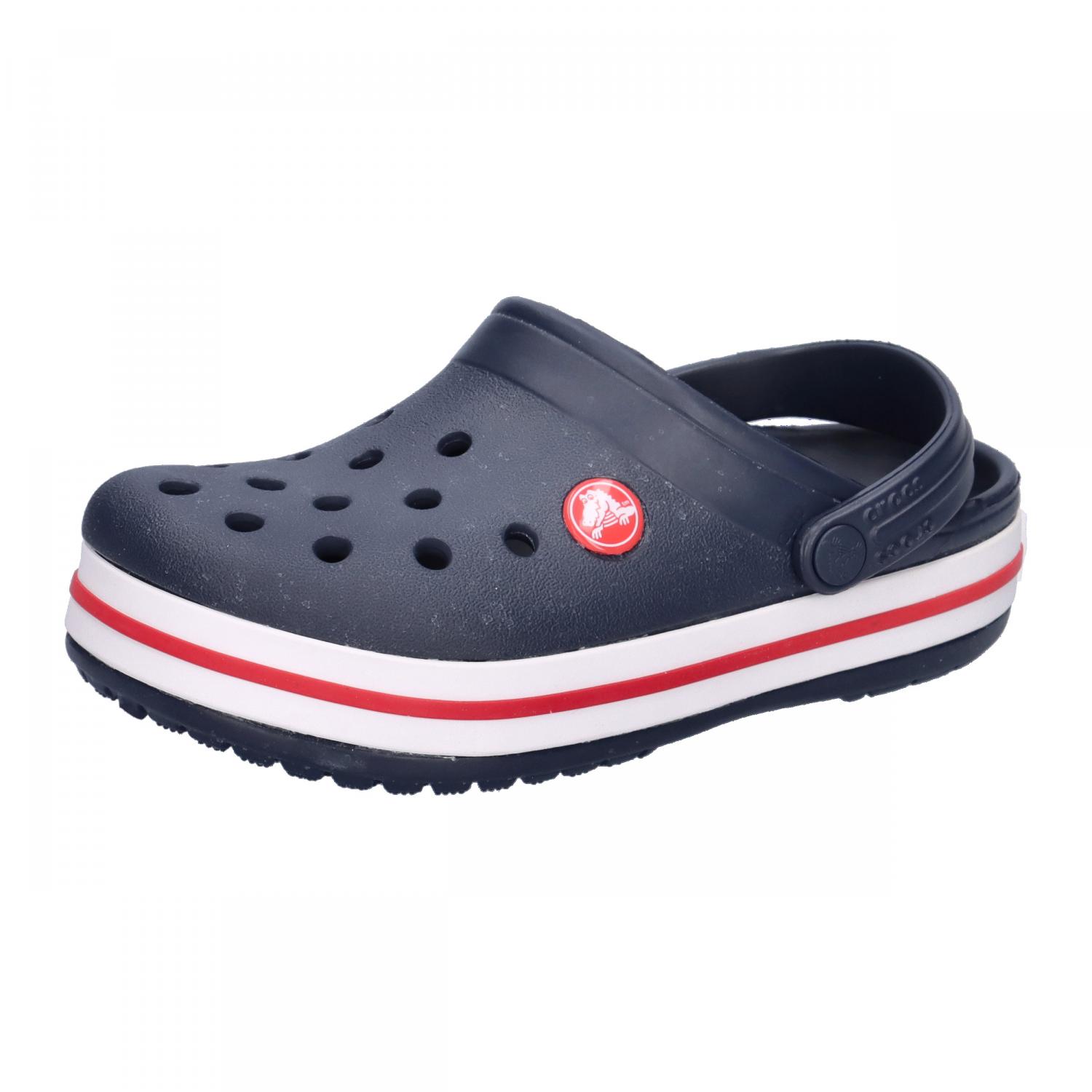 Crocs Kinder Sandale Crocband Clog K. Ein sportlicher Rennstreifen verleiht den ikonischen Clogs einen Klecks Farbe. Das konturierte Fußbett und die Außensohle sind aus dem leichten und robusten Croslite™ Material gefertigt und bieten fantastischen Tragekomfort und Halt für jedes Alltagsabenteuer. Legendärer Crocs-Komfort: originales Croslite™ Schaumpolster. Abriebfeste Außensohlen. Verstellbarer Fersenriemen für sicheren Halt. Geruchsresistent, leicht zu reinigen. Obermaterial: Sonstiges Material. Futter und Decksohle: Sonstiges Material. Laufsohle: Sonstiges Material.